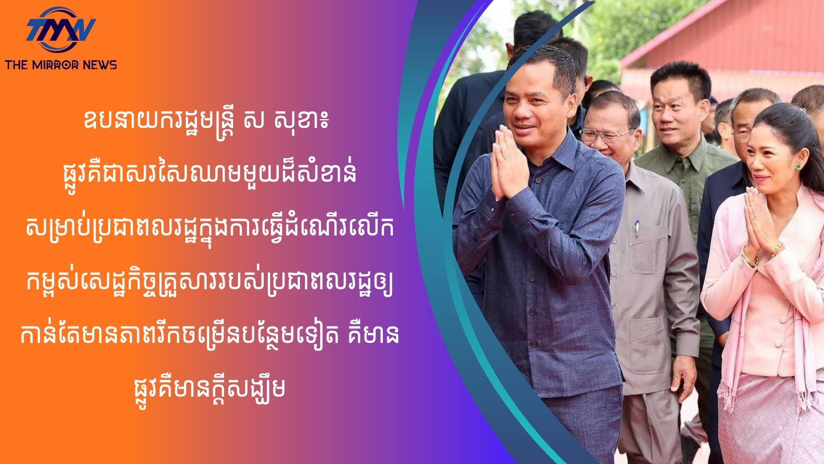 ឧបនាយករដ្ឋមន្ត្រី ស សុខា៖ ផ្លូវគឺជាសរសៃឈាមមួយដ៏សំខាន់សម្រាប់ប្រជាពលរដ្ឋក្នុងការធ្វើដំណើរលើកកម្ពស់សេដ្ឋកិច្ចគ្រួសាររបស់ប្រជាពលរដ្ឋឲ្យកាន់តែមានភាពរីកចម្រើនបន្ថែមទៀត គឺមានផ្លូវគឺមានក្តីសង្ឃឹម