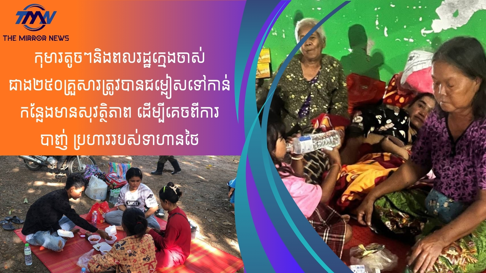 កុមារតូចៗនិងពលរដ្ឋក្មេងចាស់ជាង២៥០គ្រួសារត្រូវបានជម្លៀសទៅកាន់កន្លែងមានសុវត្ថិភាព ដើម្បីគេចពីការបាញ់ ប្រហាររបស់ទាហានថៃ