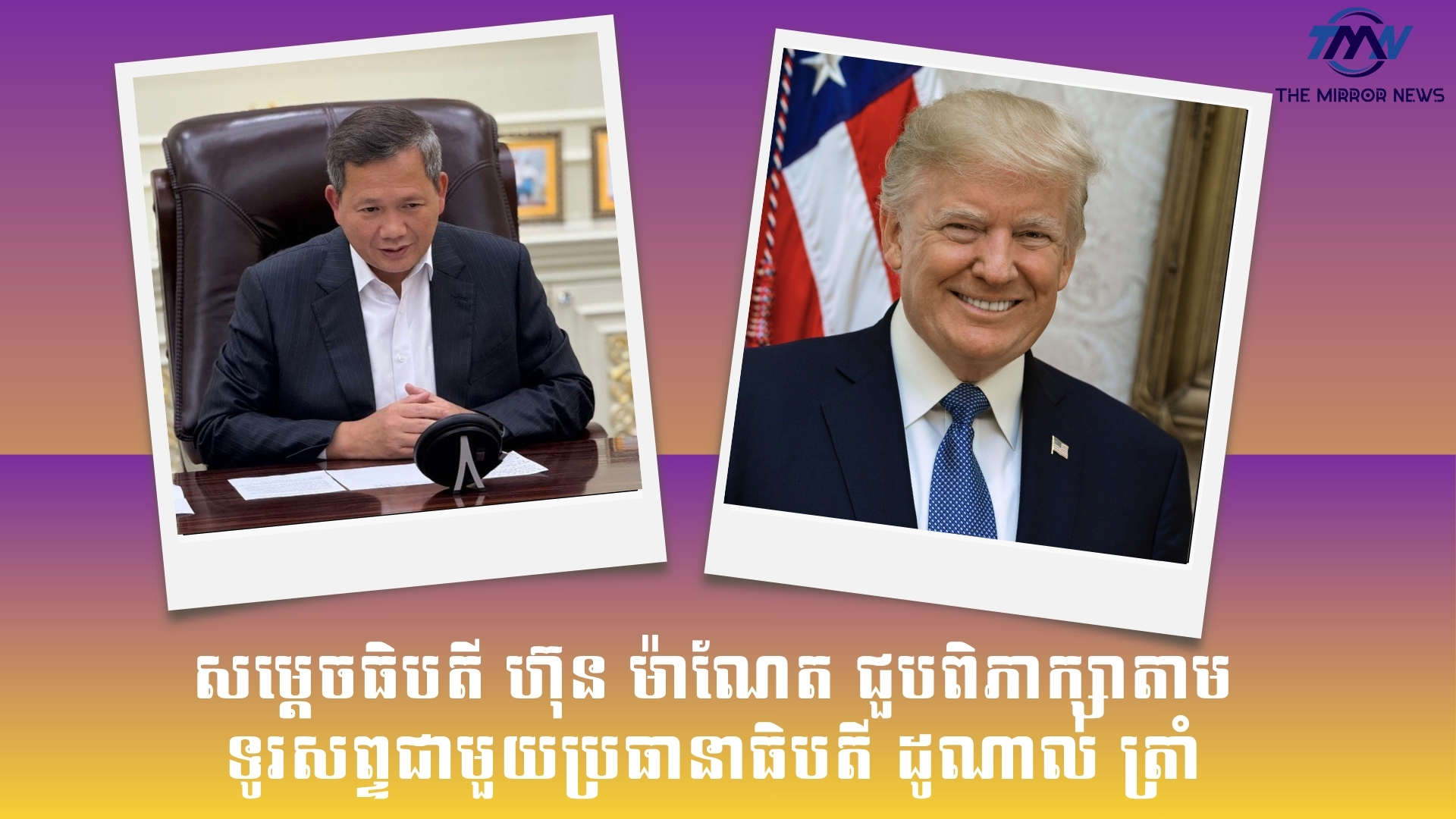 Breaking News: សម្តេចធិបតី ហ៊ុន ម៉ាណែត ជួបពិភាក្សាតាមទូរសព្ទជាមួយប្រធានាធិបតី ដូណាល់ ត្រាំ អំពីការវិវត្តសភាពការណ៍ តាមបណ្តោយព្រំដែនកម្ពុជា-ថៃ, លោក ត្រាំ នឹងបន្តតាមដានធានា មិនឱ្យមានការផ្ទុះអាវុធឡើងវិញ នៅបណ្តោយព្រំដែនកម្ពុជា-ថៃ