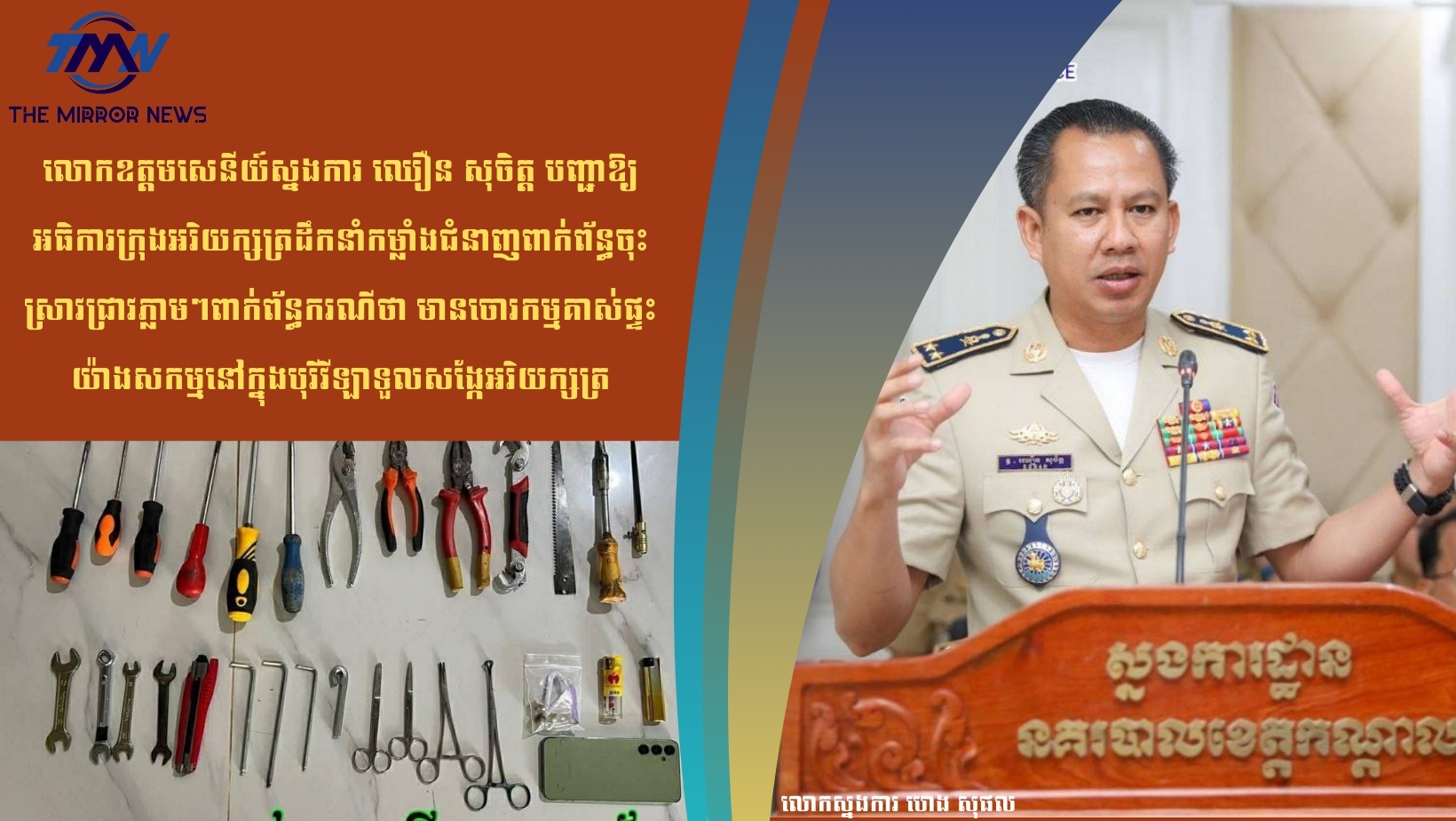 លោកឧត្តមសេនីយ៍ស្នងការ ឈឿន សុចិត្ត បញ្ជាឱ្យអធិការក្រុងអរិយក្សត្រដឹកនាំកម្លាំងជំនាញពាក់ព័ន្ធចុះស្រាវជ្រាវភ្លាមៗពាក់ព័ន្ធករណីថា មានចោរកម្មគាស់ផ្ទះយ៉ាងសកម្មនៅក្នុងបុរីវីឡាទួលសង្កែអរិយក្សត្រ