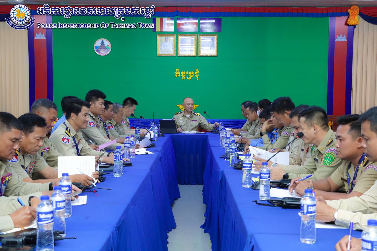 (កណ្ដាល)៖ ដោយអនុវត្តតាមគោលការណ៍ដឹកនាំរបស់លោកឧត្តមសេនីយ៍ទោ ឈឿន សុចិត្ត ស្នងការនៃស្នងការដ្ឋាននគរបាលខេត្តកណ្តាលនៅរសៀលថ្ងៃទី៥ ខែធ្នូ ឆ្នាំ២០២៥ លោកវរសេនីយ៍ឯក យី វណ្ណដា អធិការនៃអធិការដ្ឋាននគរបាលក្រុងតាខ្មៅបានដឹកនាំកិច្ចប្រជុំបូកសរុបលទ្ធផលការងារប្រចាំខែវិច្ឆិកា និងលេីកទិសដៅបន្ដខែធ្នូ ឆ្នាំ២០២៥ដោយមានការចូលរួមពីលោក-លោកស្រីអធិការរង លោកនាយផ្នែក លោកនាយប៉ុស្តិ៍ នាយរងផ្នែក នាយរងប៉ុស្ដិ៍ និងមន្ត្រីពាក់ព័ន្ធទាំងអស់ផងដែរ ។
