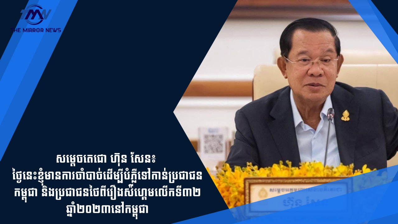 សម្ដេចតេជោ ហ៊ុន សែន៖ ថ្ងៃនេះខ្ញុំមានការចាំបាច់ដើម្បីបំភ្លឺទៅកាន់ប្រជាជនកម្ពុជា និងប្រជាជនថៃពីរឿងស៉ីហ្គេមលើកទី៣២ ឆ្នាំ២០២៣នៅកម្ពុជា