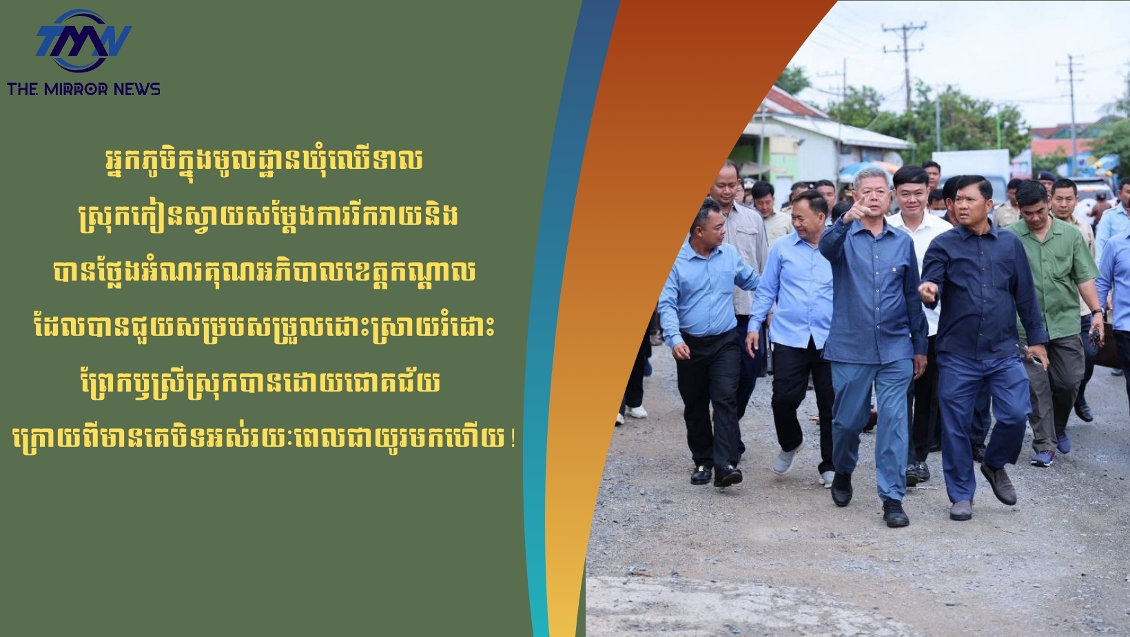 (កណ្ដាល)៖ ប្រជាពលរដ្ឋចំនួន២ភូមិ ភូមិឫស្សីស្រុក និងភូមិឫស្សីស្រុក២ ឃុំឈើទាល ស្រុកកៀនស្វាយ ខេត្តកណ្ដាល នៅព្រឹកថ្ងៃទី៧ ខែធ្នូ ឆ្នាំ២០២៥នេះ បានជួបជុំគ្នាប្រកបដោយស្នាមញញឹម និងបានថ្លែងអំណរគុណយ៉ាងជ្រាលជ្រៅចំពោះឯកឧត្ដម គួច ចំរើន អភិបាលខេត្តកណ្ដាលដោយបានជួយសម្របសម្រួលដោះស្រាយរំដោះបានព្រែកឫស្រីស្រុកយកមកវិញ ក្រោយពីមានគេបិទអស់រយៈពេលជាយូរលង់ណាស់មកហើយ ដើម្បីស្ដារនិងទម្លាយរំដោះទឹកដែលជន់លិចផ្ទះសម្បែង ស្រែកចំការ និងដំណាំរបស់ប្រជាពលរដ្ឋ។
