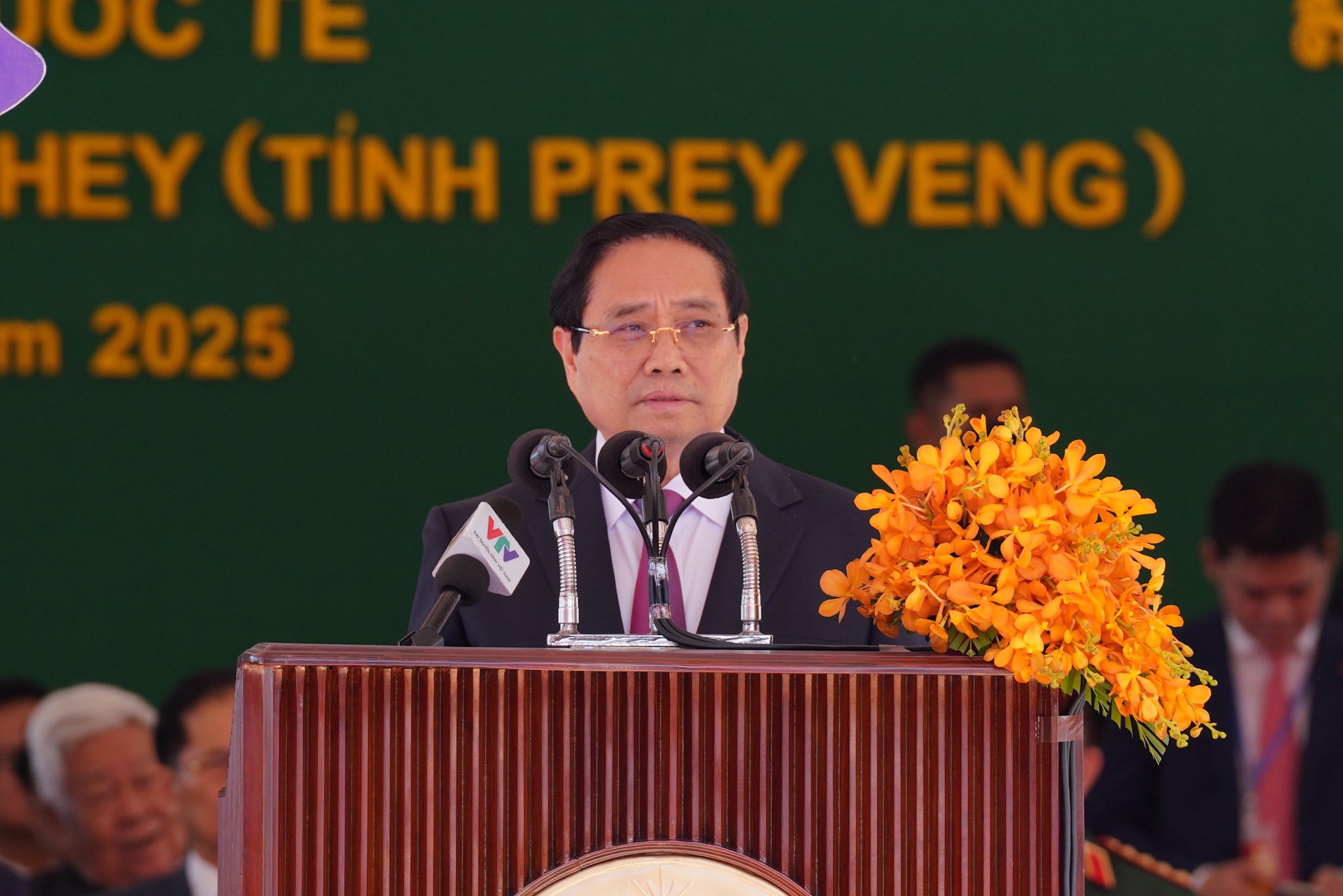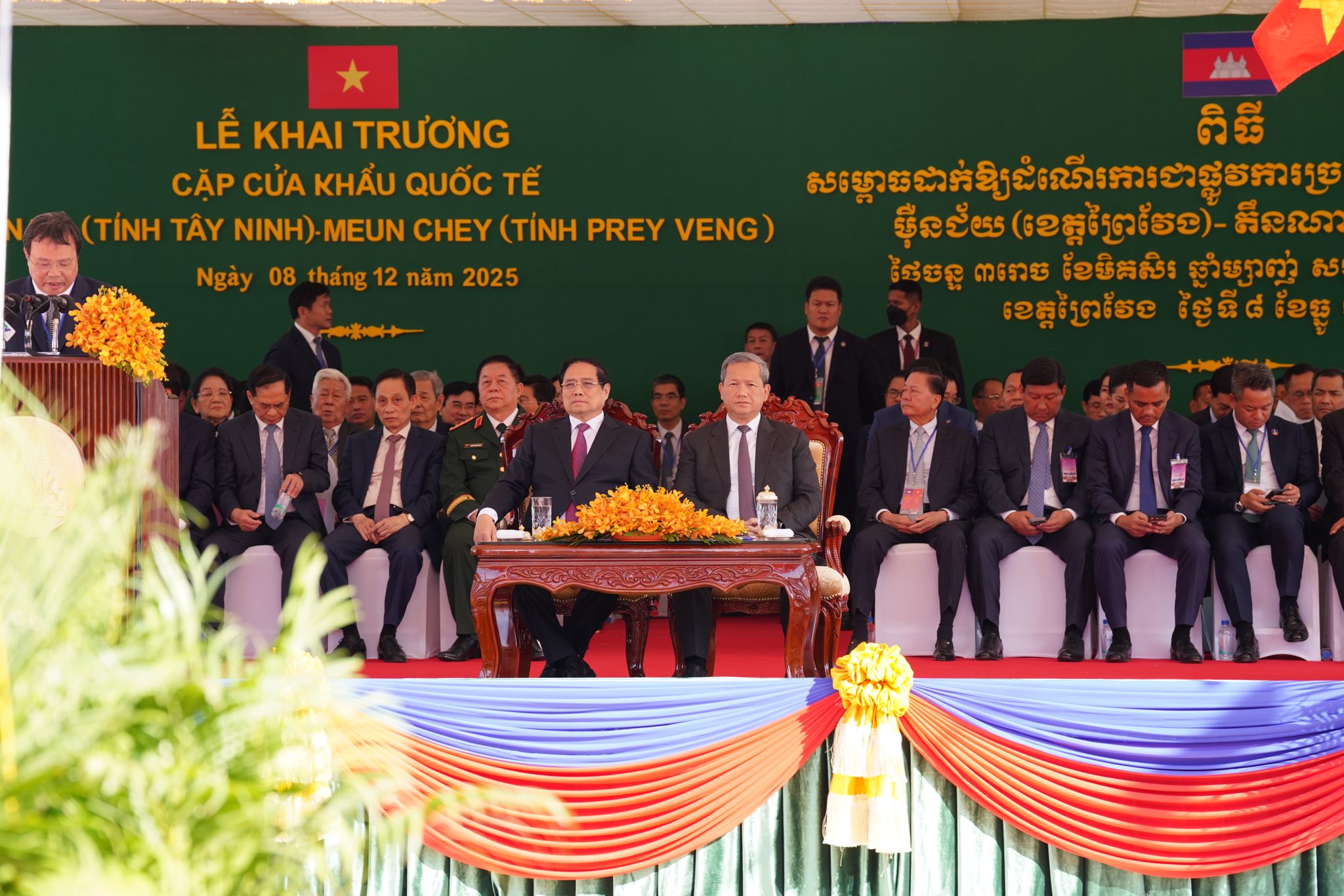 ការថ្លែងបញ្ជាក់របស់សម្តេចមហាបវរធិបតី ហ៊ុន ម៉ាណែត នាយករដ្ឋមន្ត្រីកម្ពុជា រួមជាមួយលោក ផាម មិញជីញ នាយករដ្ឋមន្ត្រីវៀតណាម នៅព្រឹកថ្ងៃចន្ទ ទី៨ ខែធ្នូ ឆ្នាំ២០២៥នេះ ក្នុងពិធីសម្ពោធដាក់ឱ្យដំណើរការជាផ្លូវការនូវច្រកទ្វារអន្តរជាតិម៉ឺនជ័យ-តឹនណាម ។