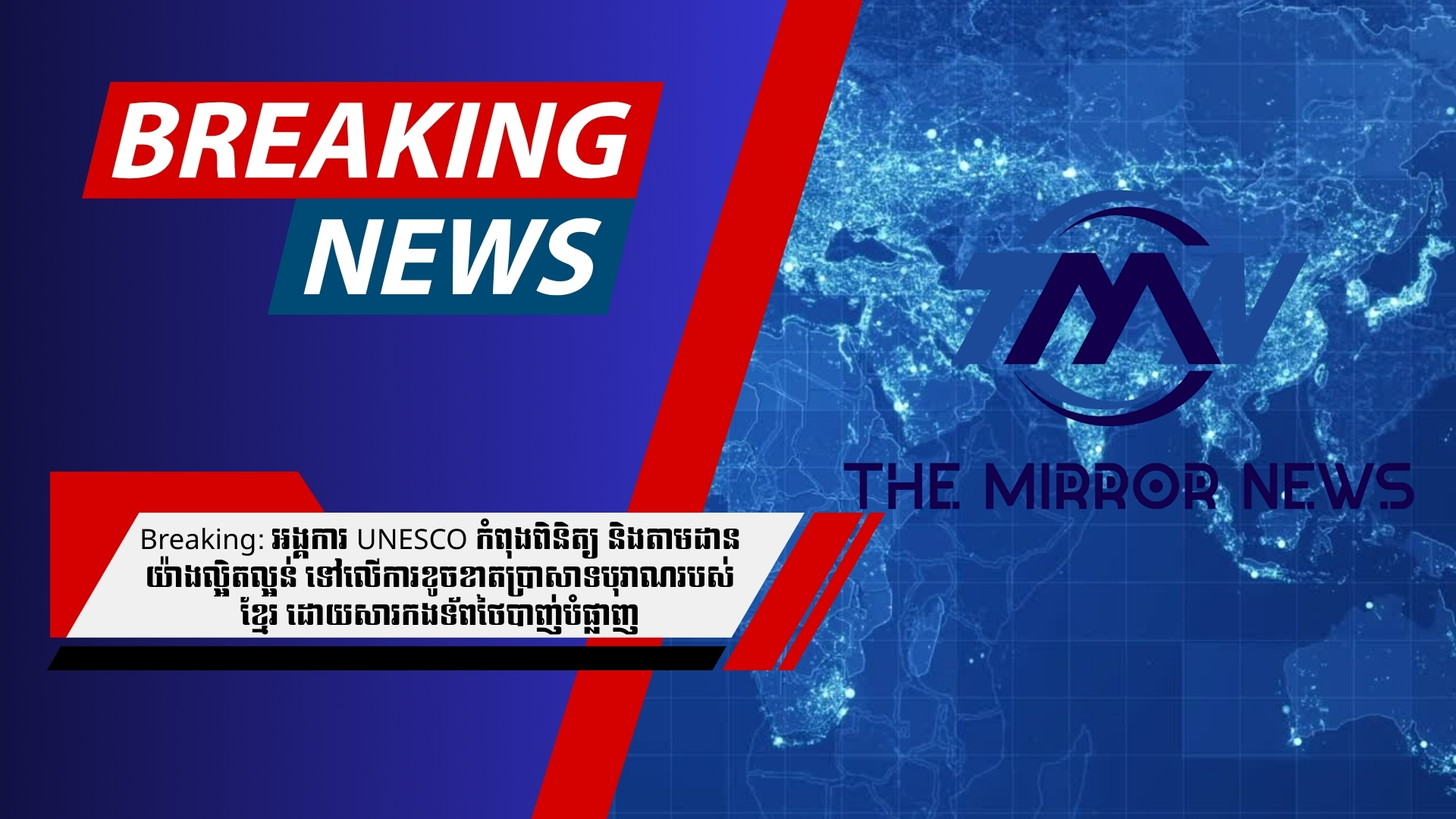 Breaking: អង្គការ UNESCO កំពុង​​ពិនិត្យ និង​តាម​ដាន​យ៉ាង​ល្អិតល្អន់ ​ទៅ​លើ​ការ​ខូច​ខាត​ប្រាសាទបុរាណ​របស់​ខ្មែរ ​ដោយសារ​កង​ទ័ព​ថៃបាញ់​​បំផ្លាញ​