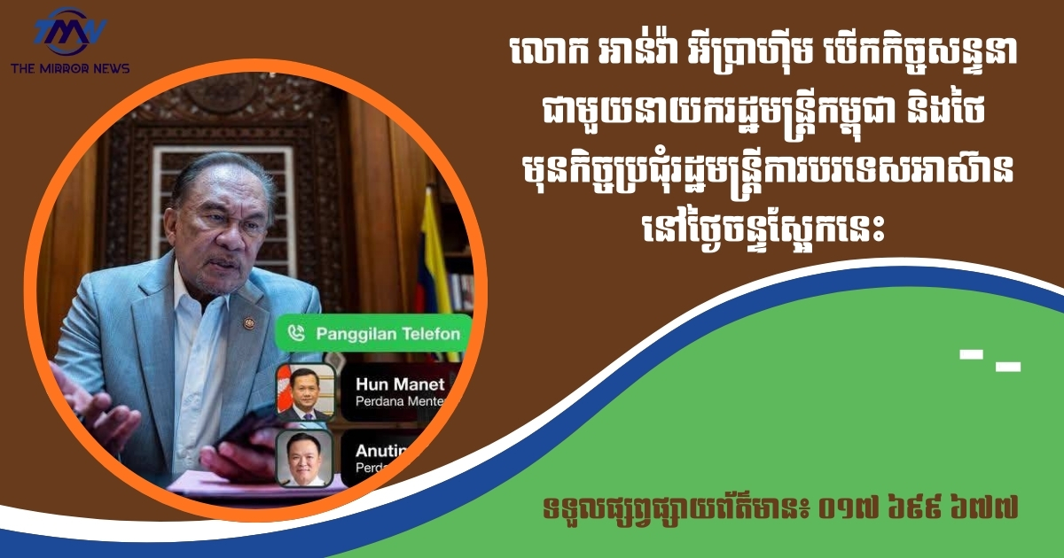 លោក អាន់វ៉ា អីប្រាហ៊ីម បើកកិច្ចសន្ទនាជាមួយនាយករដ្ឋមន្រ្តីកម្ពុជា និងថៃ មុនកិច្ចប្រជុំរដ្ឋមន្ត្រីការបរទេសអាស៊ាននៅថ្ងៃចន្ទស្អែកនេះ
