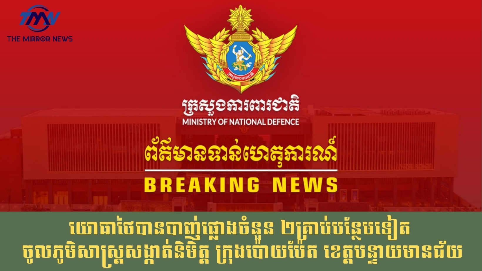 (ព្រំដែន)៖ ក្រសួងការពារជាតិ សូមជម្រាបជូននូវស្ថានការណ៍នៅតាមបន្ទាត់ព្រំដែនកម្ពុជា-ថៃ អំពីករណីយោធាថៃនៅតែបន្តធ្វើសកម្មភាពបាញ់ប្រហារចូលទីតាំងប្រជាជនស៊ីវិលកម្ពុជានៅយោធភូមិភាគទី៥ ក្នុងភូមិសាស្ត្រសង្កាត់និមិត្ត ក្រុងប៉ោយប៉ែត ខេត្តបន្ទាយមានជ័យ នាថ្ងៃទី២៦ ខែធ្នូ ឆ្នាំ២០២៥៖