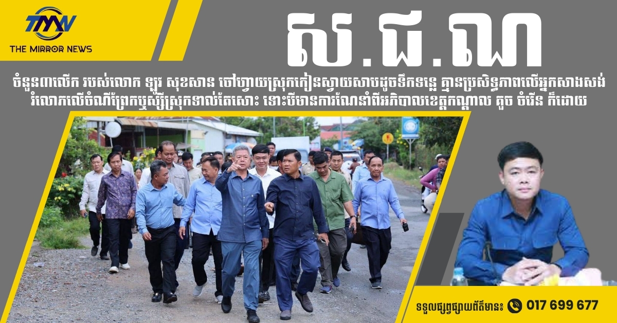 «ស.ជ.ណ»ចំនួន៣លើក របស់លោក ឡូវ សុខសាន​ ចៅហ្វាយស្រុកកៀនស្វាយសាបដូចទឹកទន្លេ គ្មានប្រសិទ្ធភាពលើអ្នកសាងសង់រំលោភលើចំណីព្រែកឬស្សីស្រុកទាល់តែសោះ ទោះបីមានការណែនាំពីអភិបាលខេត្តកណ្ដាល គួច ចំរើន ក៏ដោយ