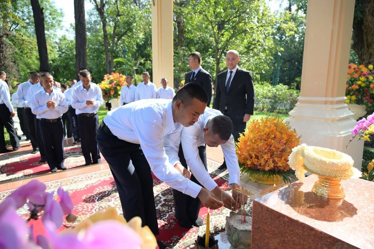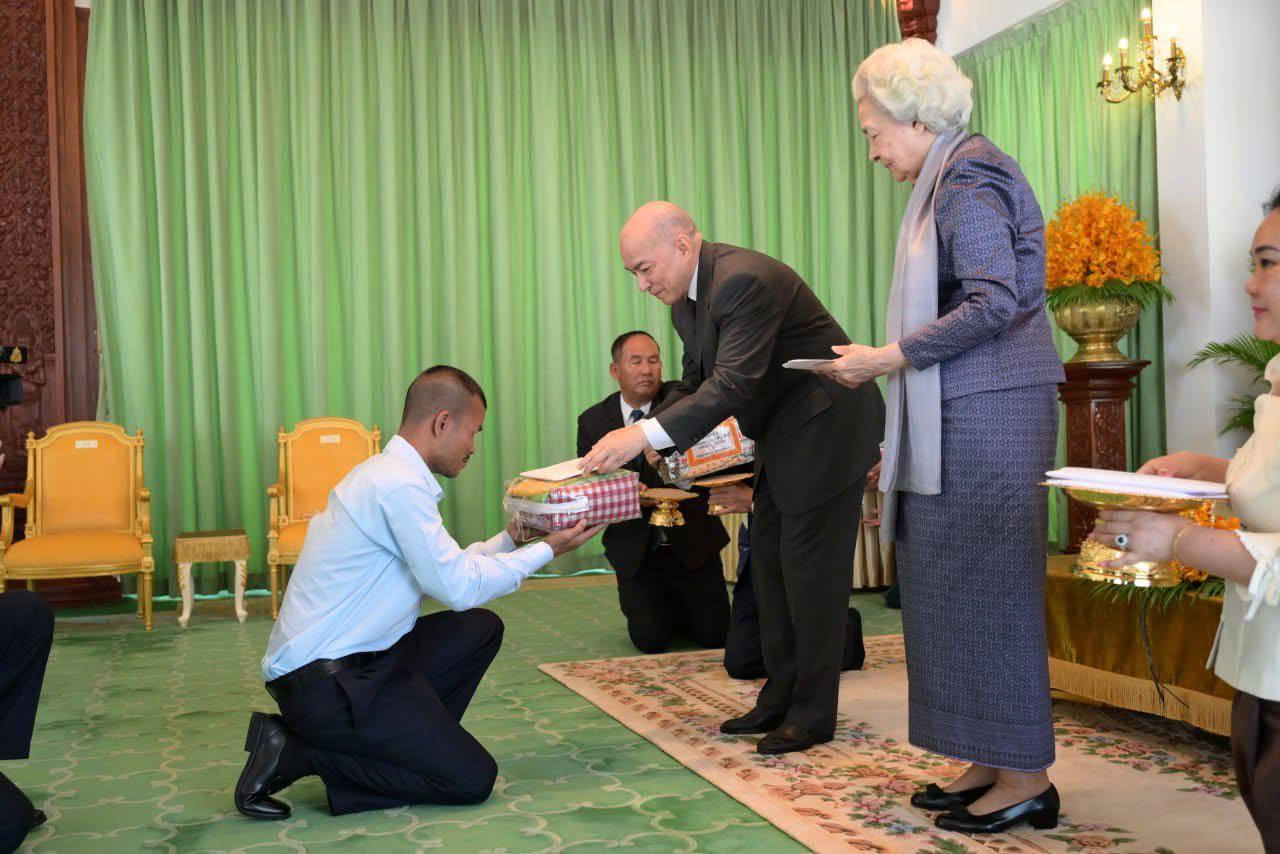 បាទសម្តេចព្រះបរមនាថ ព្រះមហាក្សត្រនៃព្រះរាជាណាចក្រកម្ពុជា ជាទីគោរពសក្ការៈដ៏ខ្ពង់ខ្ពស់បំផុត និងសម្តេចព្រះមហាក្សត្រី ព្រះវររាជមាតាជាតិខ្មែរ ជាទីគោរពសក្ការៈដ៏ខ្ពង់ខ្ពស់បំផុត ព្រះអង្គសព្វព្រះរាជហឬទ័យប្រោសព្រះរាជទានឯកឧត្តម ហ៊ុន ម៉ានី ឧបនាយករដ្ឋមន្ត្រី រដ្ឋមន្ត្រីក្រសួងមុខងារសាធារណៈ និងឯកឧត្តមឧត្តមសេនីយ៍ឯក ហ៊ុន ម៉ានិត មេបញ្ជាការរងកងទ័ពជើងគោក ដឹកនាំវីរកងទ័ពទាំង១៨រូប ដែលបាននិវត្តន៍មកកាន់មាតុប្រទេសវិញ ប្រកបដោយសុខសុវត្ថិភាពខ្ពស់ ក្រោយពីស្ថិតក្នុងការឃុំគ្រងរបស់ភាគីថៃអស់រយៈពេល ១៥៥ថ្ងៃ ចូលក្រាបថ្វាយបង្គំគាល់ នៅព្រះបរមរាជវាំង វេលាព្រឹក ថ្ងៃទី០១ ខែមករា ឆ្នាំ២០២៦។