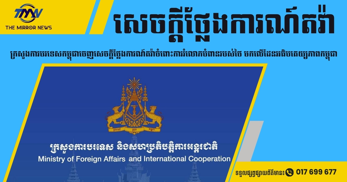 ក្រសួងការបរទេសកម្ពុជាចេញសេចក្តីថ្លែងការណ៍តវ៉ាចំពោះការរំលោភបំពានរបស់ថៃ មកលើដែនអធិបតេយ្យភាពកម្ពុជា