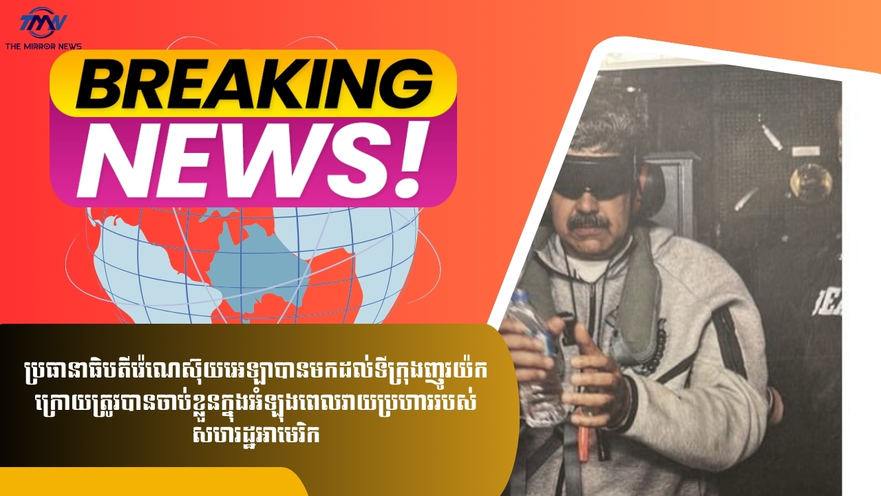 (ញូយ៉ក)៖ ប្រធានាធិបតីវ៉េណេស៊ុយអេឡា លោក នីកូឡាស ម៉ាឌូរ៉ូ បានមកដល់ទីក្រុងញូវយ៉ក បន្ទាប់ពីលោក និងភរិយារបស់លោក ត្រូវបានចាប់ខ្លួនក្នុងអំឡុងពេលវាយប្រហាររបស់ សហរដ្ឋអាមេរិក លើប្រទេសវ៉េណេស៊ុយអេឡា។ នេះបើយោងតាមការចេញផ្សាយដោយសារព័ត៌មានអាមេរិកធំៗ ដូចជា CNN, ABC, Reuters។