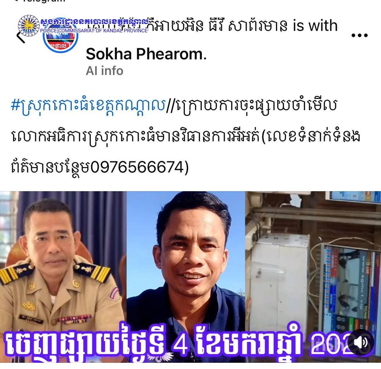 ស្នងការដ្ឋាននគរបាលខេត្តកណ្តាលបំភ្លឺថា មិនឃើញមានបើកលេងល្បែងអនឡាញដូចការចុះផ្សាយនោះទេ!