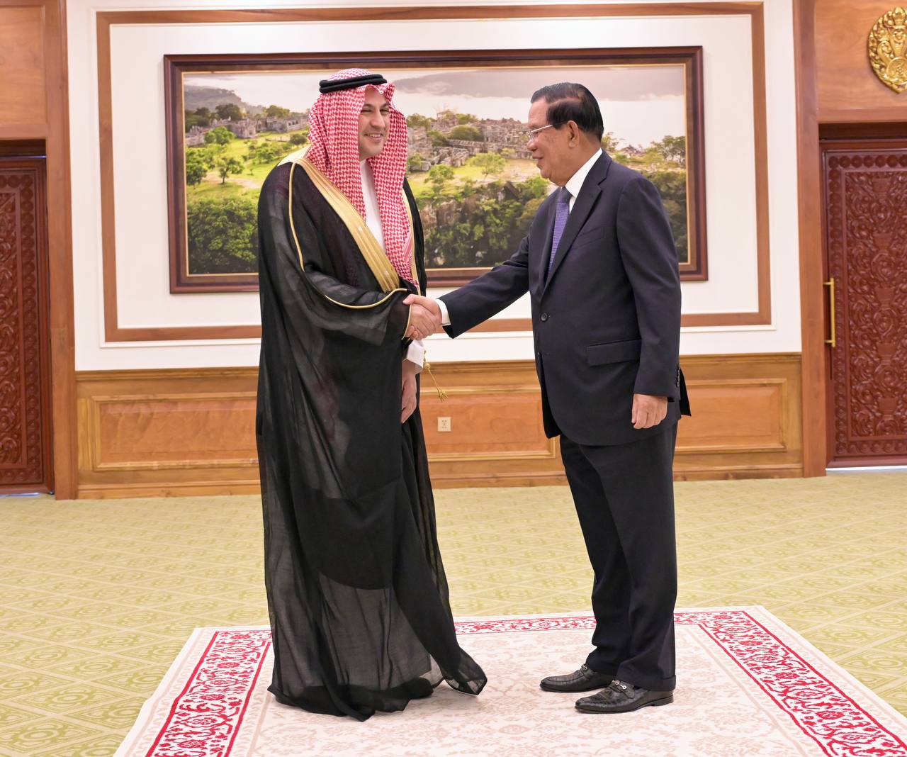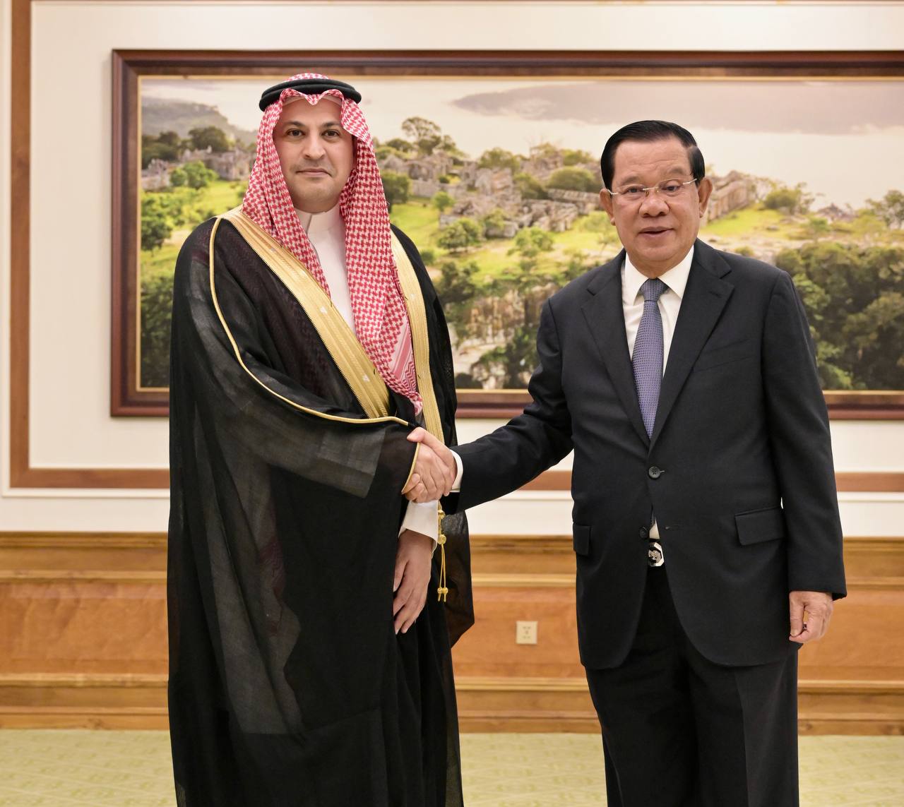 (ភ្នំពេញ)៖ សម្តេចតេជោ ហ៊ុន សែន ប្រធានព្រឹទ្ធសភាកម្ពុជា នៅព្រឹកថ្ងៃទី៦ ខែមករា ឆ្នាំ២០២៦នេះ បានអនុញ្ញាតឱ្យលោក Mohammed Ismaeil A. Dahlwy ឯកអគ្គរាជទូតវិសាមញ្ញ និងពេញសមត្ថភាព នៃព្រះរាជាណាចក្រអារ៉ាប៊ីសាអូឌីត ប្រចាំនៅកម្ពុជា ចូលជួបសម្ដែងការគួរសម និងជម្រាបលា៕