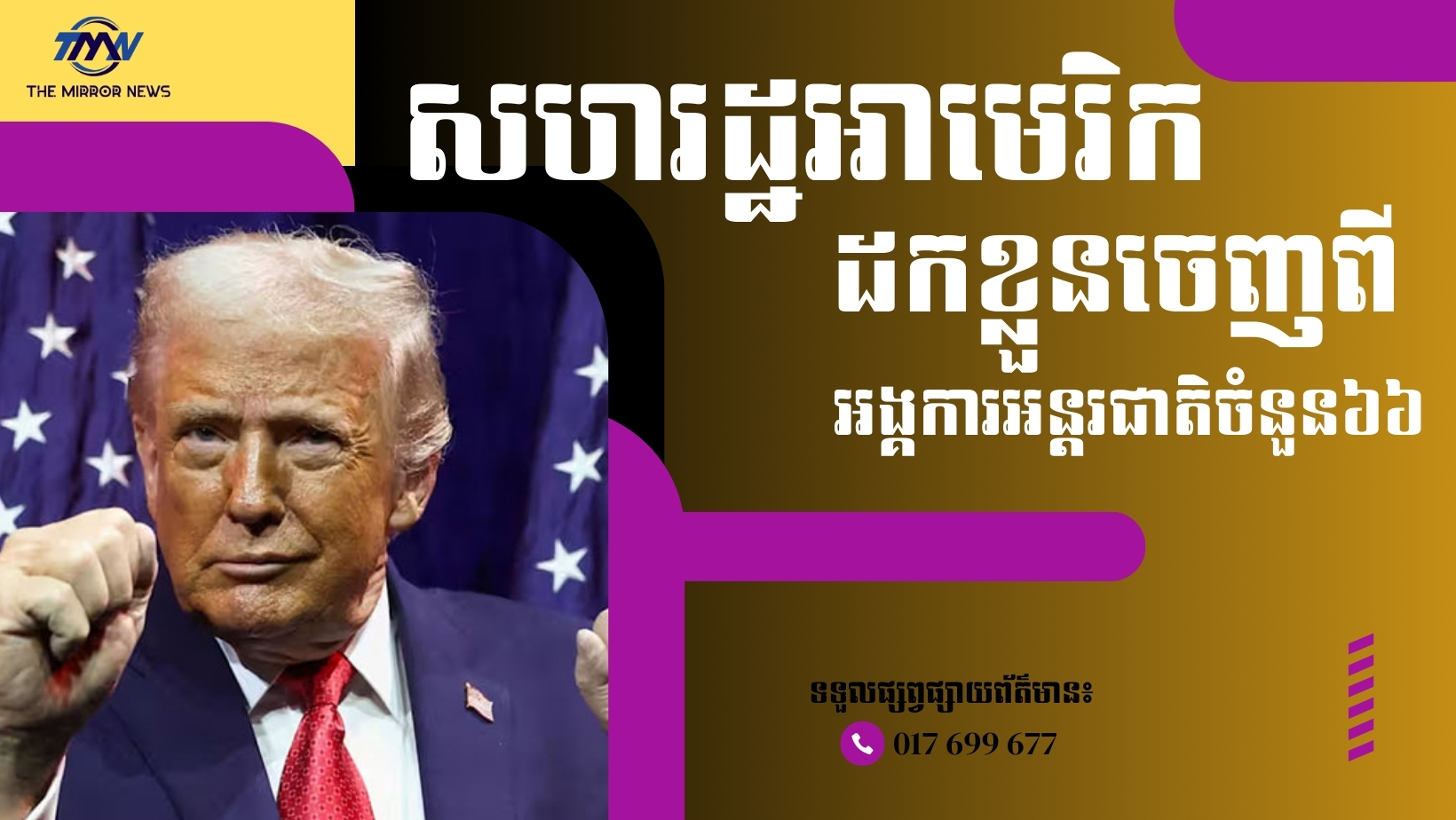 ថ្មីទៀតហើយ! លោក ត្រាំ ដកសហរដ្ឋអាមេរិកចេញពីអង្គការអន្តរជាតិចំនួន៦៦