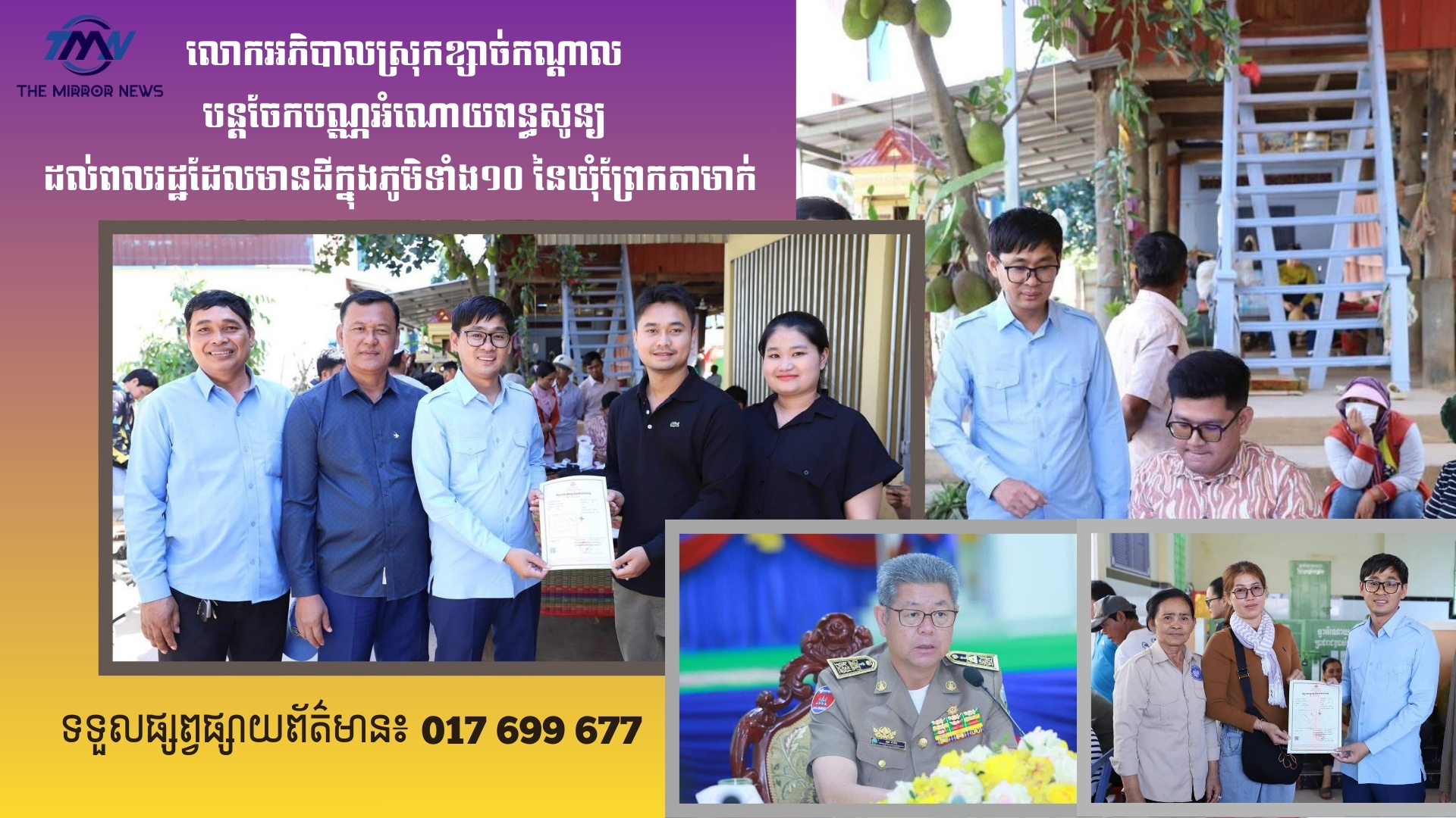 លោកអភិបាលស្រុកខ្សាច់កណ្ដាលបន្តចែកបណ្ណអំណោយពន្ធសូន្យដល់ពលរដ្ឋដែលមានដីក្នុងភូមិទាំង១០ នៃឃុំព្រែកតាមាក់
