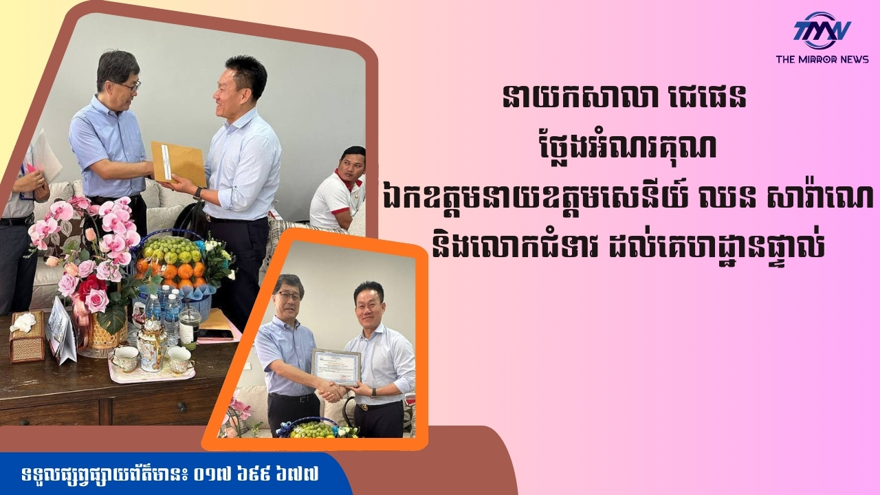 នាយកសាលា ជេផេន បានថ្លែងអំណរគុណជូនចំពោះឯកឧត្តម នាយឧត្តមសេនីយ៍ ឈន សារ៉ាណេ និងលោកជំទាវ ដល់គេហដ្ឋានផ្ទាល់