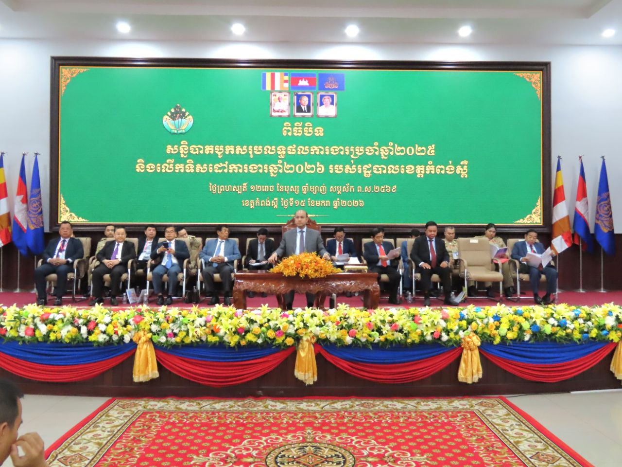 (កំពង់ស្ពឺ)៖ ឯកឧត្ដមឧបនាយករដ្ឋមន្ត្រី ហ៊ុន ម៉ានី រដ្ឋមន្ត្រីក្រសួងមុខងារសាធារណៈ នៅថ្ងៃទី១៥ ខែមករា ឆ្នាំ២០២៦ បានអញ្ជើញជាធិបតី ក្នុងពិធីបិទសន្និបាតបូកសរុបលទ្ធផលការងារ របស់រដ្ឋបាលខេត្តកំពង់ស្ពឺ ឆ្នាំ២០២៥ និងលើកទិសដៅអនុវត្តការងារបន្តឆ្នាំ២០២៦ របស់រដ្ឋបាលខេត្តកំពង់ស្ពឺ។