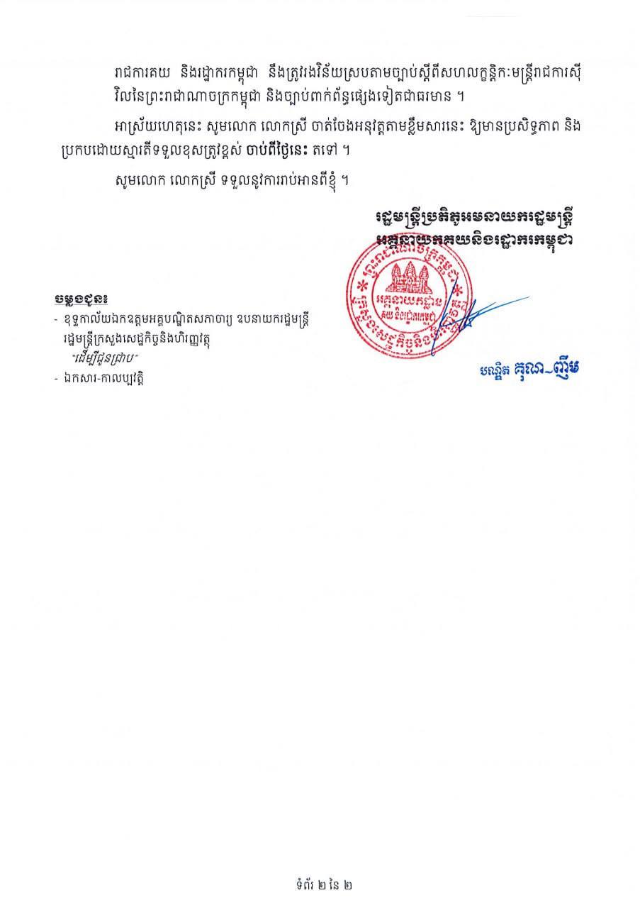 (ភ្នំពេញ)៖ រដ្ឋមន្ត្រីប្រតិភូរាជរដ្ឋាភិបាល និងជាអគ្គនាយកនៃអគ្គនាយកដ្ឋានគយ និងរដ្ឋករកម្ពុជា លោកបណ្ឌិត គុណ ញឹម បានចេញលិខិតមួយផ្ញើប្រធានលេខាធិការដ្ឋាន នាយកដ្ឋាន សាខា និងការិយាល័យគយ និងរដ្ឋករទាំងអស់ ពង្រឹងប្រសិទ្ធភាពនៃការអនុវត្តតួនាទី និងភារកិច្ច និងក្រមសីលធម៌វិជ្ជាជីវៈ។