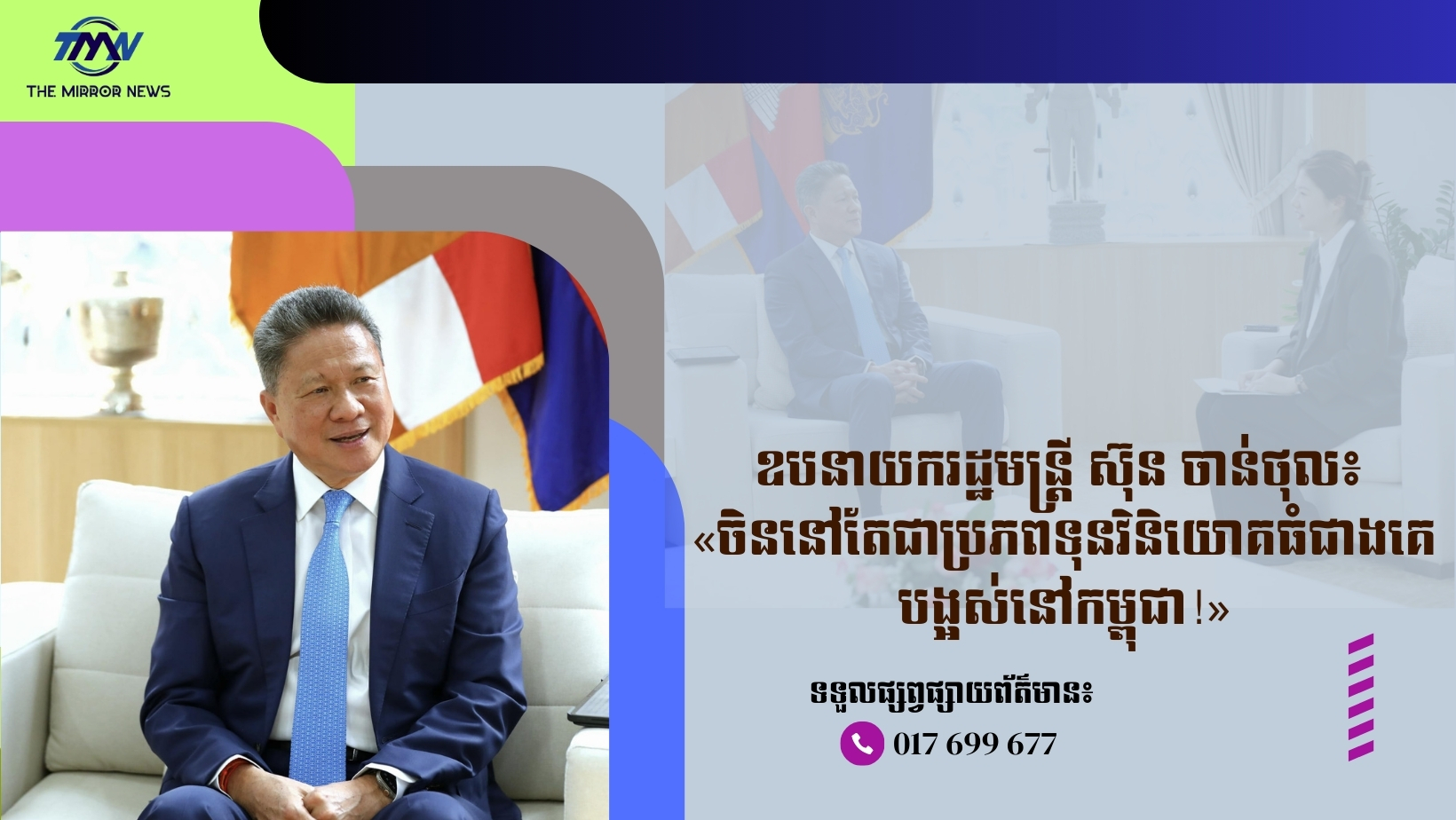 ការគូសបញ្ជាក់របស់ឯកឧត្ដម ឧបនាយករដ្ឋមន្ត្រី ស៊ុន ចាន់ថុល អនុប្រធានទី១ ក្រុមប្រឹក្សាអភិវឌ្ឍន៍កម្ពុជា នាព្រឹកថ្ងៃសុក្រ ទី១៦ ខែមករា ឆ្នាំ២០២៦ ក្នុងពេលផ្តល់កិច្ចសម្ភាសន៍ពិសេសជូនភ្នាក់ងារសារព័ត៌មាន China News Service (CNS) ដែលជាស្ថាប័នព័ត៌មានរដ្ឋដ៏ធំមួយរបស់ចិន ដើម្បីឆ្លុះបញ្ចាំងពីវឌ្ឍនភាពសង្គម-សេដ្ឋកិច្ច បរិយាកាសវិនិយោគ និងភាពរឹងមាំនៃទំនាក់ទំនងទ្វេភាគីរវាងប្រទេសទាំងពីរ។