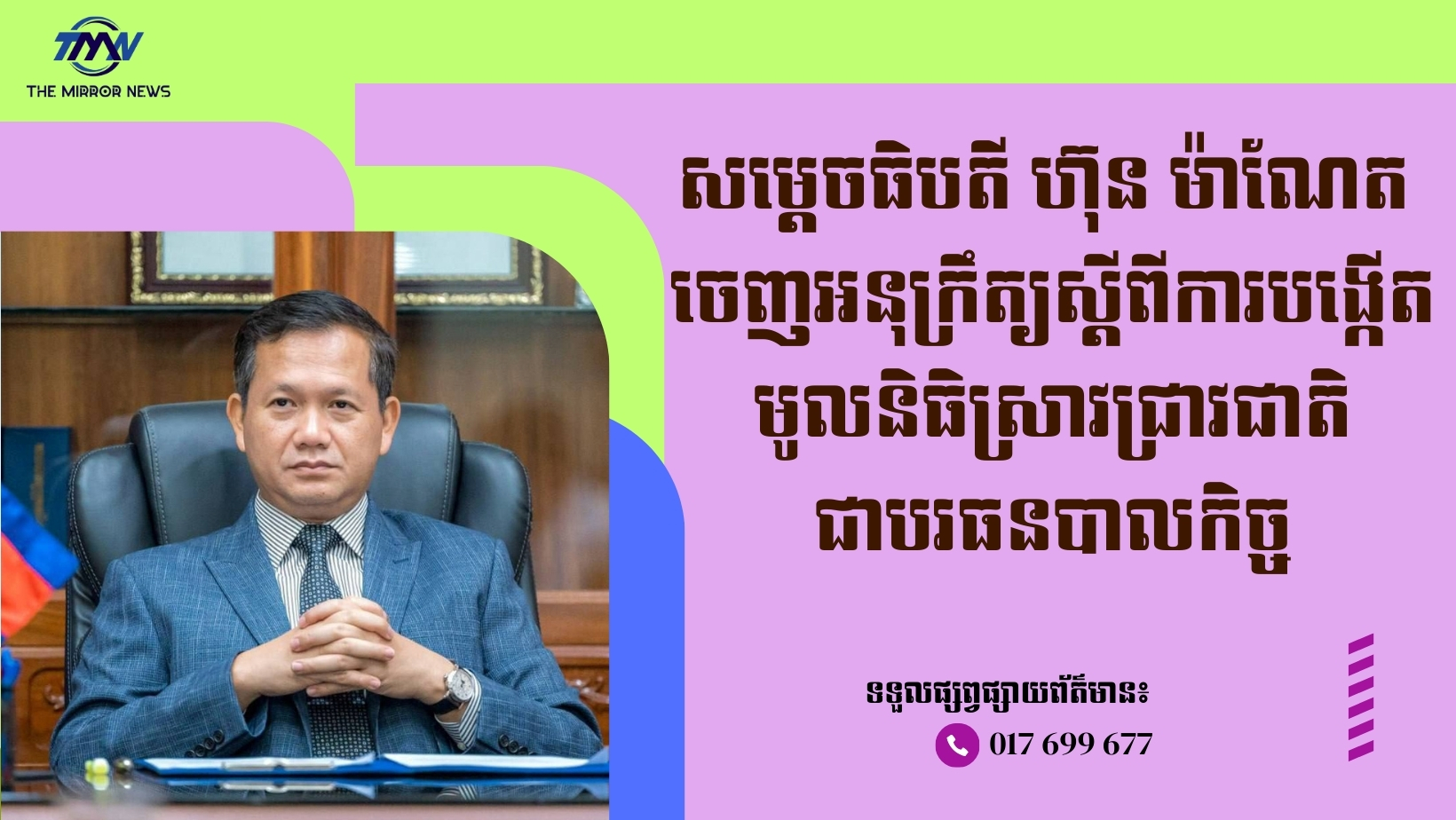 (ភ្នំពេញ)៖ សម្តេចបវរធិបតី ហ៊ុន ម៉ាណែត នាយករដ្ឋមន្ត្រីនៃកម្ពុជា បានចេញអនុក្រឹត្យ ស្តីពីការបង្កើតមូលនិធិស្រាវជ្រាវជាតិជាបរធនបាលកិច្ច។