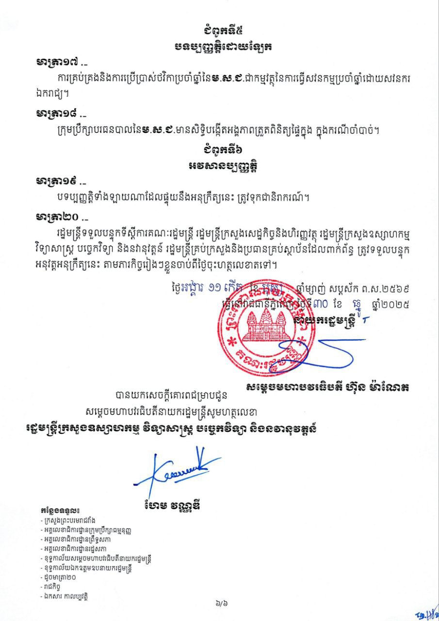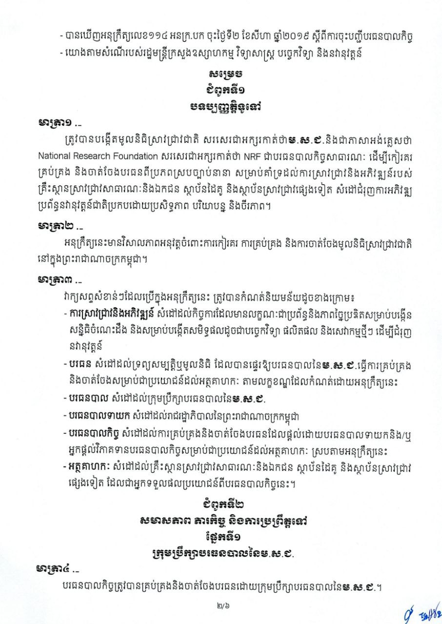 សម្តេចធិបតី ហ៊ុន ម៉ាណែត ចេញអនុក្រឹត្យស្តីពីការបង្កើតមូលនិធិស្រាវជ្រាវជាតិជាបរធនបាលកិច្ច