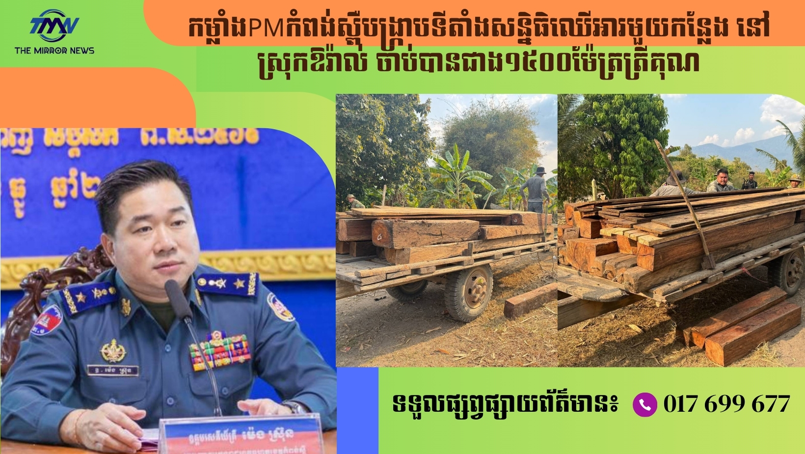 កម្លាំងPMកំពង់ស្ពឺបង្ក្រាបទីតាំងសន្និធិឈើអារមួយកន្លែង នៅស្រុកឱរ៉ាល់ ចាប់បានជាង១៥០០ម៉ែត្រត្រីគុណ