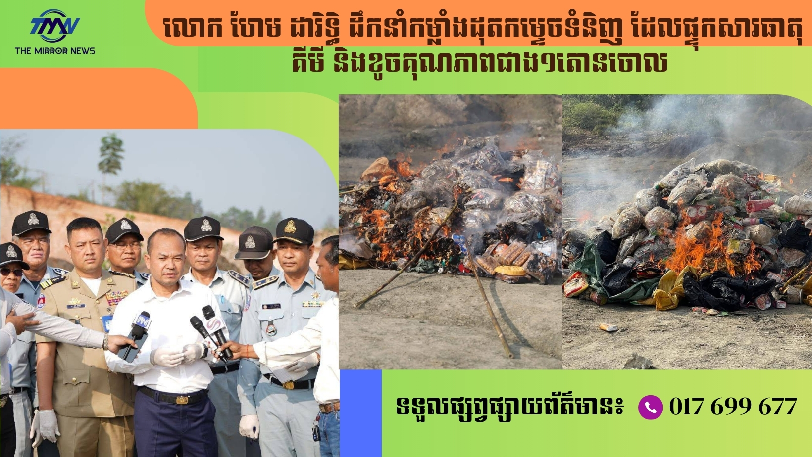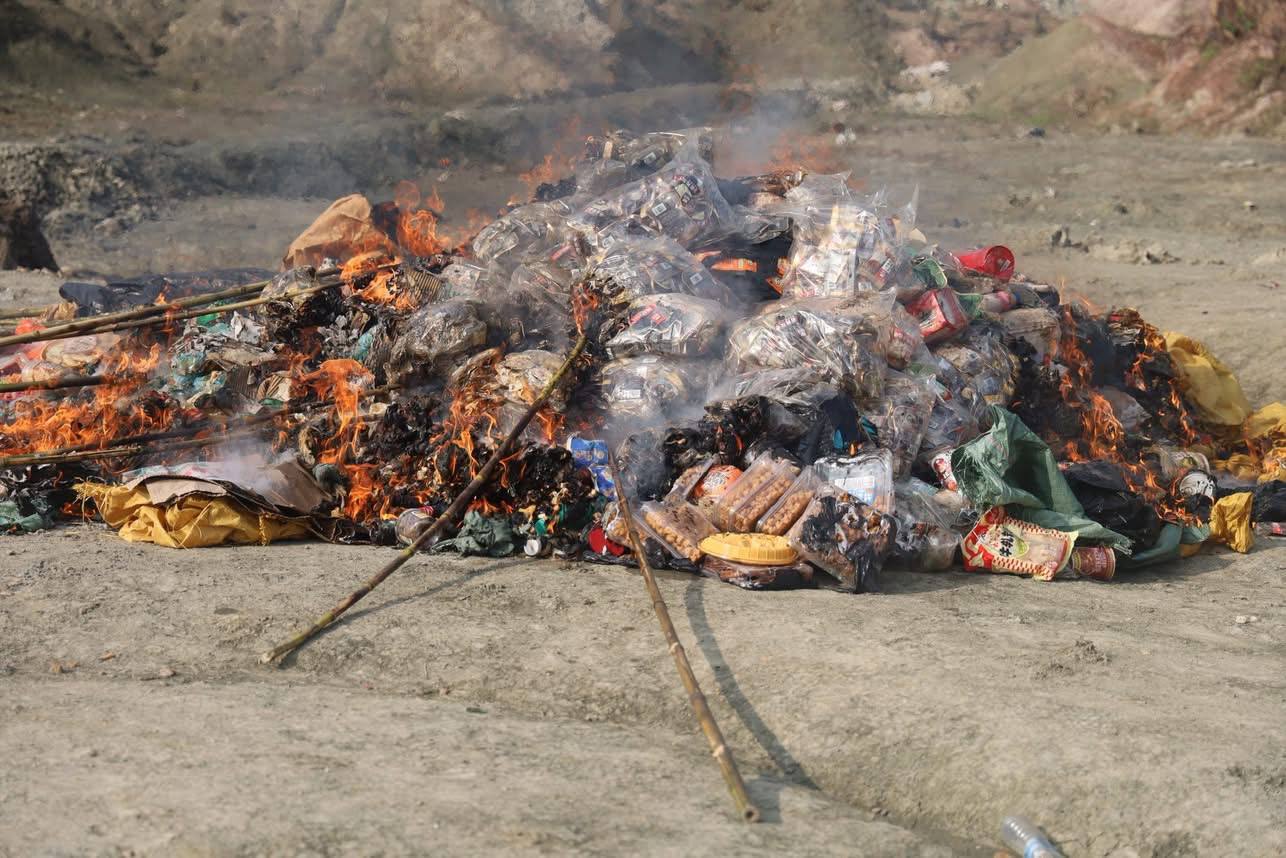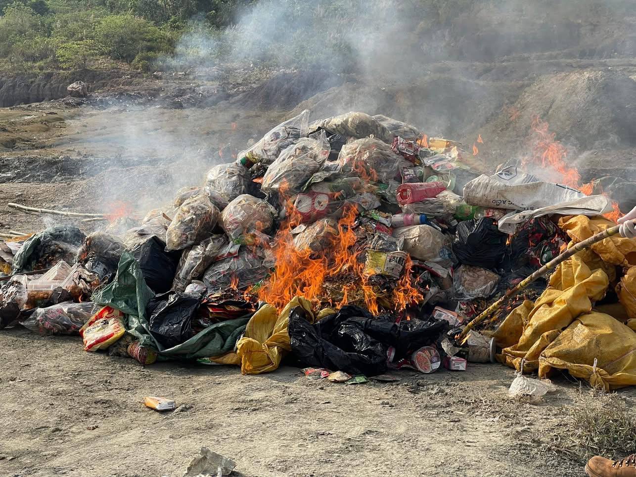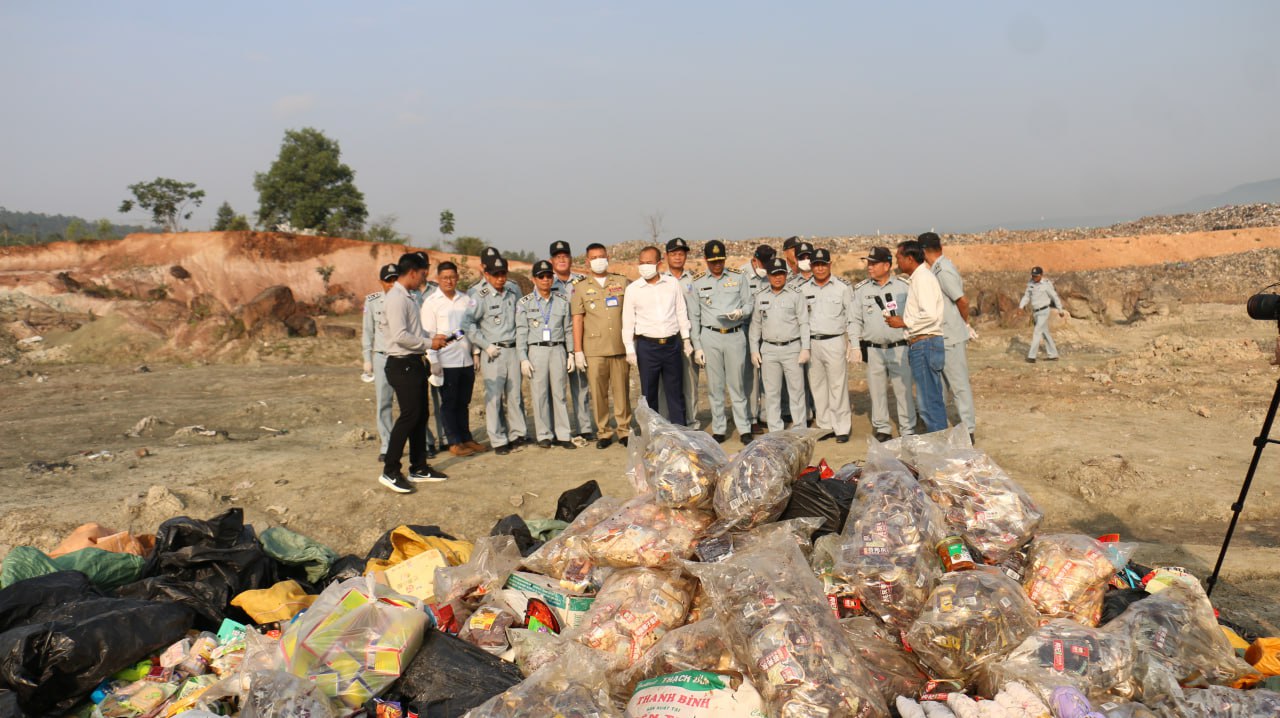 លោក ហែម ដារិទ្ធិ ដឹកនាំកម្លាំងដុតកម្ទេចទំនិញ ដែលផ្ទុកសារធាតុគីមី និងខូចគុណភាពជាង១តោនចោល ​