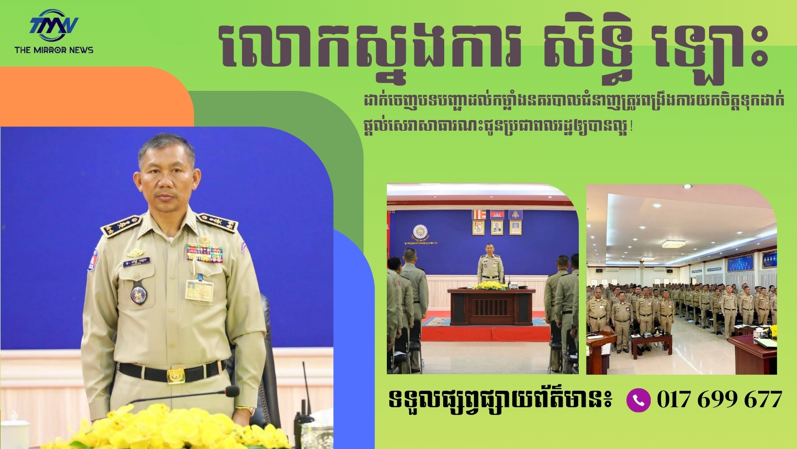 (បន្ទាយមានជ័យ)៖ លោកឧត្តមសេនីយ៍ទោ សិទ្ធិ ឡោះ បានដាក់ចេញបទបញ្ជាដល់កម្លាំងនគរបាលជំនាញ នគរបាលតាមក្រុង/ស្រុក នគរបាលប៉ុស្តិ៍រដ្ឋបាលគ្រប់ឃុំ/សង្កាត់ ត្រូវពង្រឹងការយកចិត្តទុកដាក់ផ្តល់សេវាសាធារណះជូនប្រជាពលរដ្ឋឲ្យបានល្អ, ពង្រឹងការទប់ស្កាត់ បង្ក្រាបបទល្មើសឆ្លងដែនខុសច្បាប់ ពិសេសស្រុក/ក្រុងជាប់ព្រំដែន, ពង្រឹងទប់ស្កាត់ការប្រមូលផ្តុំ ការស្នាក់នៅខុសច្បាប់របស់ជនបរទេស, ពង្រឹងការងារយាមល្បាត ប្រចាំការ២៤ម៉ោង, ពង្រឹងការងារសន្តិសុខសណ្តាប់ធ្នាប់ សុវត្ថិភាពសង្គម និងសន្តិសុខព្រំដែន, បន្តស្រាវជ្រាវបង្ការ បង្ក្រាបបទល្មើសគ្រប់ប្រភេទ និងក្មេងទំនើង ដើម្បីឲ្យភូមិ ឃុំ/សង្កាត់មានសុវត្ថិភាពពិតប្រាកដ។
