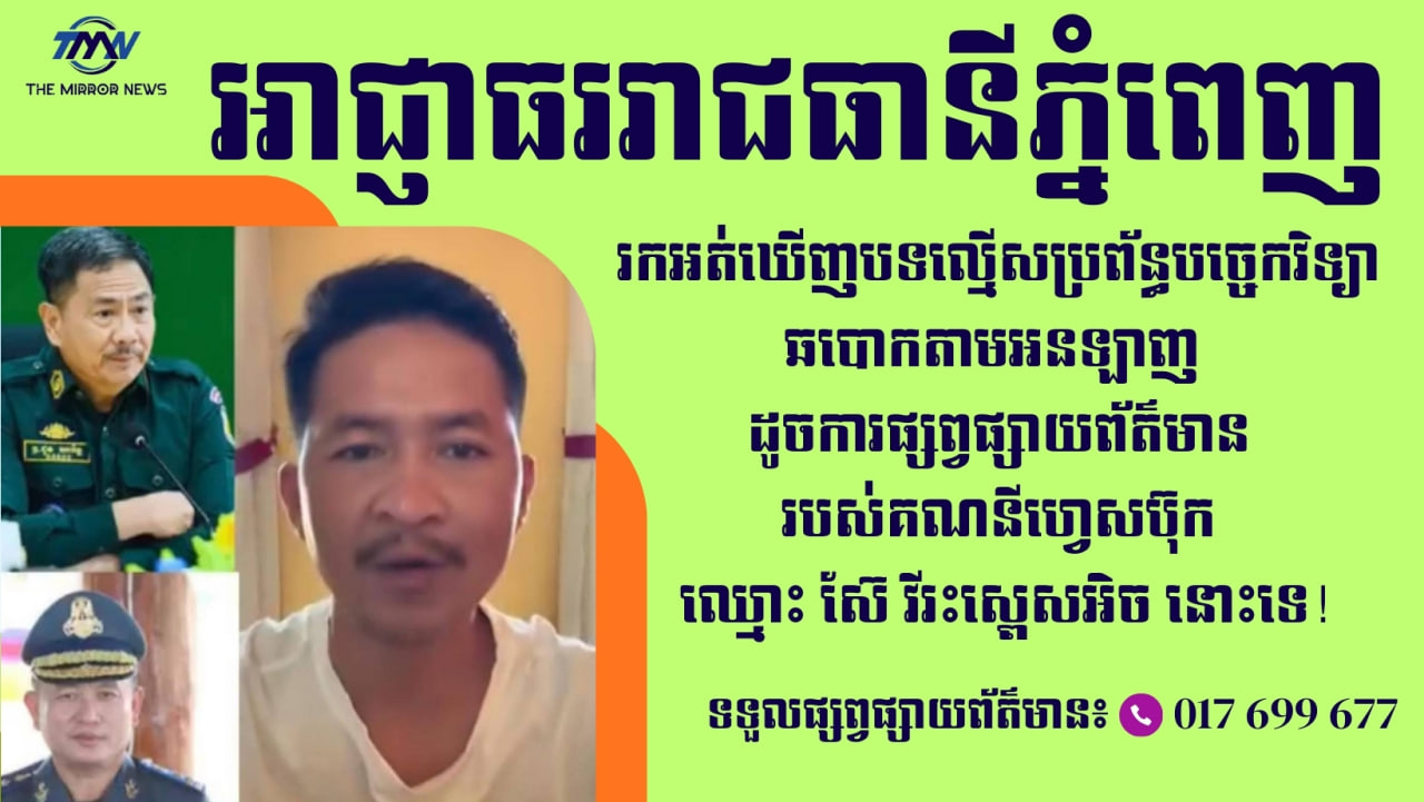 អាជ្ញាធររាជធានីភ្នំពេញរកអត់ឃើញបទល្មើសប្រព័ន្ធបច្ចេកវិទ្យាឆបោកតាមអនឡាញ ដូចការផ្សព្វផ្សាយព័ត៌មានរបស់គណនីហ្វេសប៊ុក ឈ្មោះ ស៊ែ វីរះស្ពេសអិច នោះទេ!