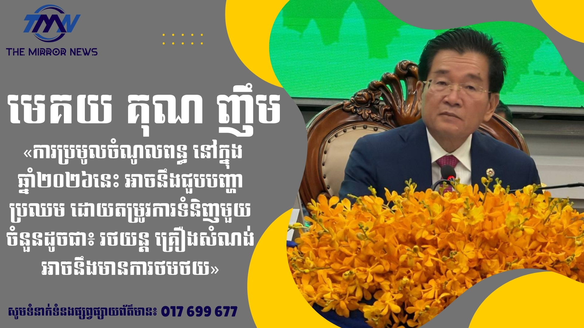 លោក គុណ ញឹម បានបញ្ជាក់ទៀតថា «សម្រាប់អគ្គនាយកដ្ឋានគយ និងរដ្ឋាករកម្ពុជា ការប្រមូលចំណូលពន្ធអាករ នៅឆ្នាំ២០២៦ អាចជួបបញ្ហាប្រឈមខ្លះ  ដោយផែនការចំណូល ដែលកំណត់ដោយច្បាប់ហិរញ្ញវត្ថុ សម្រាប់ការគ្រប់គ្រងនៅឆ្នាំ២០២៦ មានកំណើនរហូតដល់១៨.៥ភាគរយ បើធៀបនឹងឆ្នាំ២០២៥។ នៅក្នុងឆ្នាំ២០២៦នេះ សង្កេតឃើញថា ស្ថានភាពការផ្គត់ផ្គង់ ជាពិសេសយានយន្ដ គ្រឿងសំណង់ និងទំនិញប្រើប្រាស់ប្រចាំថ្ងៃ អាចនឹងមានការធ្លាក់ចុះ ដោយសារការថមថយ នៃតម្រូវការប្រើប្រាស់នៅក្នុងប្រទេស»។