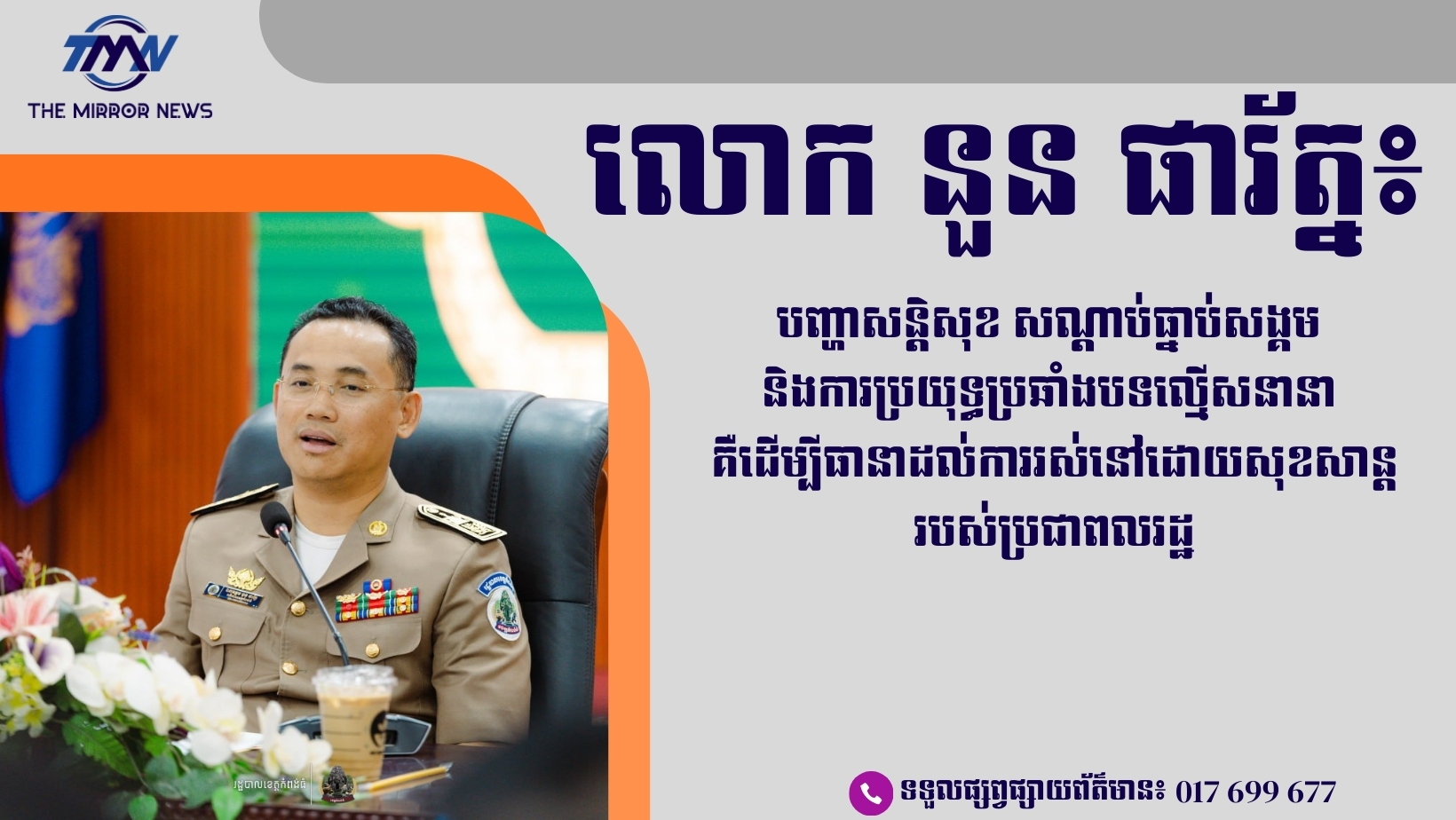 លោក នួន ផារ័ត្ន៖ បញ្ហាសន្តិសុខ សណ្តាប់ធ្នាប់សង្គម និងការប្រយុទ្ធប្រឆាំងបទល្មើសនានា គឺដើម្បីធានាដល់ការរស់នៅដោយសុខសាន្តរបស់ប្រជាពលរដ្ឋ