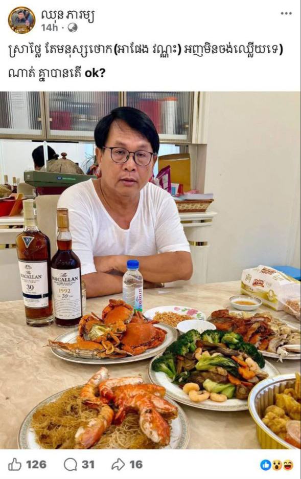 គួរជម្រាបជូនថា កាលពីថ្ងៃទី១៦​ ខែកុម្ភៈ ឆ្នាំ២០២៦ លោក ផែង វណ្ណៈ បានបង្ហោះសារជាលក្ខណៈឯកជននៅក្នុងទំព័រហ្វេសប៊ុកផ្ទាល់លោកថា «ស្រាមិនទាន់បើកគម្របទេ តែម្ចាស់ធ្លាក់ភ្នែកហើយ!»។