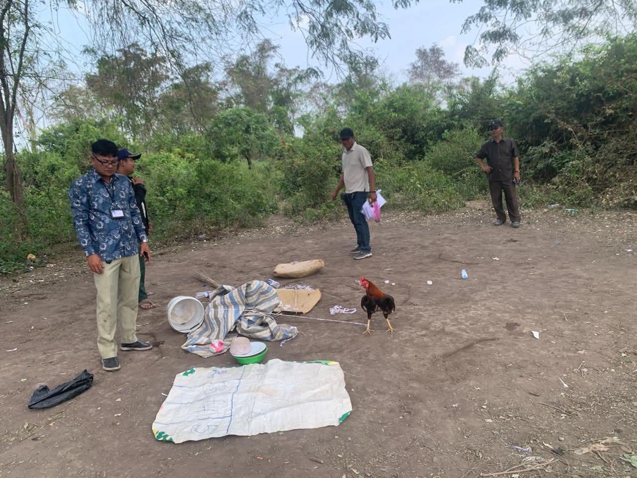មុខសញ្ញាលេងល្បែងអាប៉ោងនិងមាន់ជល់ដីខុសច្បាប់ជាង១០នាក់បានរត់គេចខ្លួនបាត់អស់ ប៉ូលិសស្រុកលើកដែកចាប់បានតែមាន់រស់១ក្បាលនិងសម្ភារៈមួយចំនួន!