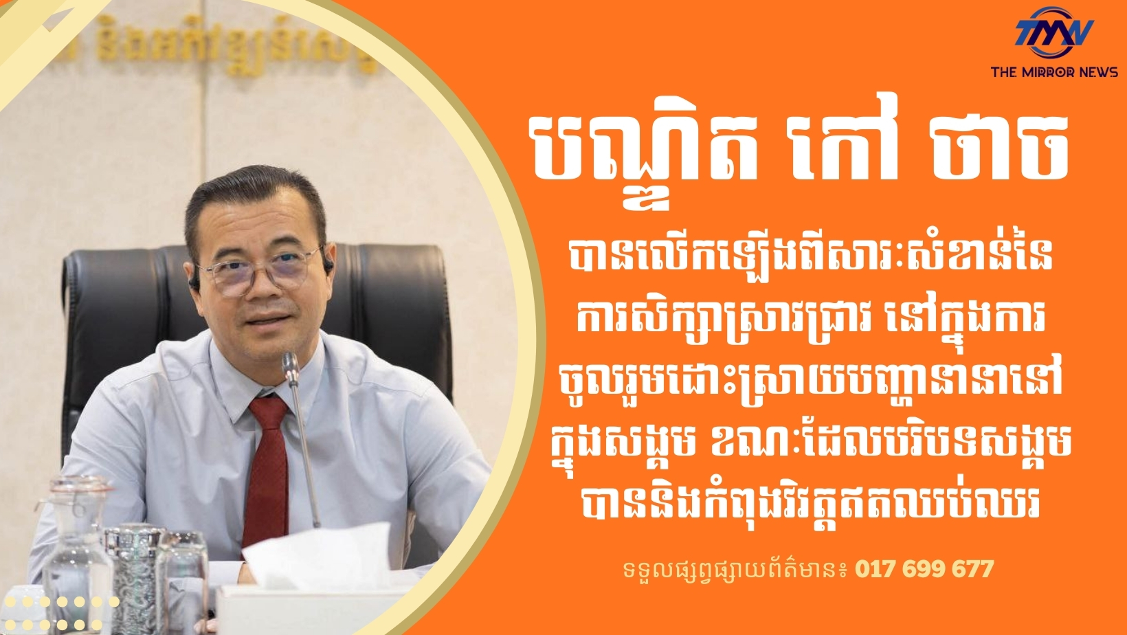ឯកឧត្តមបណ្ឌិតប្រតិភូបានលើកឡើងពីសារៈសំខាន់នៃការសិក្សាស្រាវជ្រាវ នៅក្នុងការចូលរួមដោះស្រាយបញ្ហានានានៅក្នុងសង្គម ខណៈដែលបរិបទសង្គមបាននិងកំពុងវិវត្តឥតឈប់ឈរ។