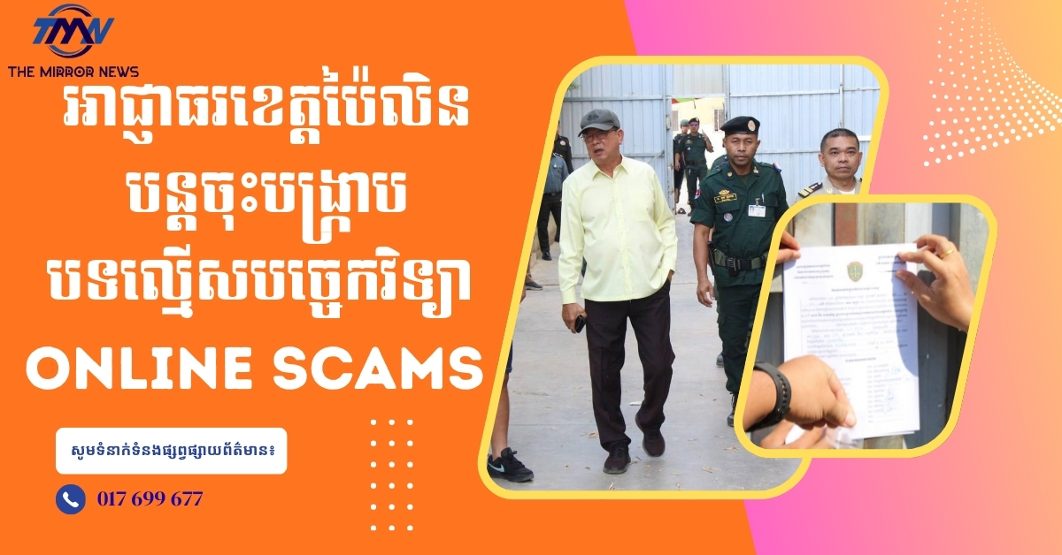 (ប៉ៃលិន)៖ ដោយអនុវត្តតាមការចង្អុលបង្ហាញពីសំណាក់លោកស្រី បាន ស្រីមុំ អភិបាលខេត្តប៉ៃលិន គណៈបញ្ជាការឯកភាពខេត្ត នៅថ្ងៃទី១៩ ខែកុម្ភៈ ឆ្នាំ២០២៦នេះ បានសហការជាមួយព្រះរាជ្ញារងអមសាលាដំបូងខេត្ត បន្តចុះប្រតិបត្តិការឆែកឆេរ បង្ក្រាបបទល្មើស និងបិទទីតាំងដែលសង្ស័យមានបទល្មើសបច្ចេកវិទ្យា (Online Scams) មួយចំនួន នៅភូមិផ្សារព្រំ ឃុំស្ទឹងកាច់ ស្រុកសាលាក្រៅ ខេត្តប៉ៃលិន ដើម្បីការពារសន្តិសុខ សណ្តាប់ធ្នាប់ជូនប្រជាពលរដ្ឋនៅទូទាំងខេត្ត។