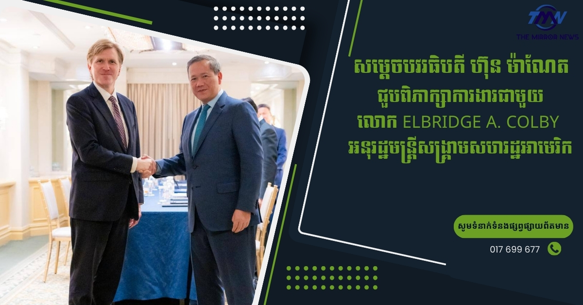 សម្តេចបវរធិបតី ហ៊ុន ម៉ាណែត ជួបពិភាក្សាការងារជាមួយលោក Elbridge A. Colby អនុរដ្ឋមន្ត្រីសង្គ្រាមសហរដ្ឋអាមេរិក