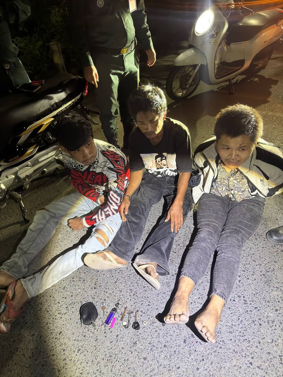ប្រភពបន្តថា ជនសង្ស័យទាំង៣នាក់៖ *១. ឈ្មោះដេ បូណា ភេទប្រុស អាយុ ១៨ ឆ្នាំ ជនជាតិខ្មែរ មានទីលំនៅភូមិទួលរកា  សង្កាត់ចាក់អង្រែក្រោម ខណ្ឌមានជ័យ រាជធានីភ្នំពេញ មុខរបរ មិនពិតប្រាកដ។ *២. ឈ្មោះសារី ភារឿន ភេទប្រុស អាយុ៣៨ឆ្នាំ ជនជាតិខ្មែរ រស់នៅភូមិគគីធំ ឃុំគគីធំ ស្រុកកៀនស្វាយ ខេត្តកណ្តាល មុខរបរ មិនពិតប្រាកដ។ *៣. ឈ្មោះច្រឹក វាសនា ភេទប្រុស អាយុ៣២ឆ្នាំ ជនជាតិខ្មែរ រស់នៅភូមិកំពង់ពោធិ៍ ឃុំកំពង់ភ្នំ ស្រុកកៀនស្វាយ ខេត្តកណ្តាល មុខរបរ មិនពិតប្រាកដ។ ប្រភពបន្តទៀតថា ជនសង្ស័យទាំង៣នាក់មានផ្ទូកសារធាតុញៀនវិជ្ជមាននៅក្នុងទឹកនោម។ រួមជាមួយវត្ថុតាងចាប់យក៖ ១-ម៉ូតូ០១គ្រឿងម៉ាកហុងដាសេ១២៥ ផលិតឆ្នាំ២០២៦ ខុសប្រក្រតី។ ២-កូនកាបូបពណ៌ខ្មៅ០១។ ៣-ឧបករណ៍សម្រាប់កាច់ករណ៍ម៉ូតូ០១។ ៤-សោចិញ្ចៀនលេខ០៨ចំនួន០១។ ៥-កូនសោម៉ូតូ ម៉ាកហុងដា០១។ ៦-ទូរស័ព្ទដៃ០១គ្រឿងម៉ាកOPPO។