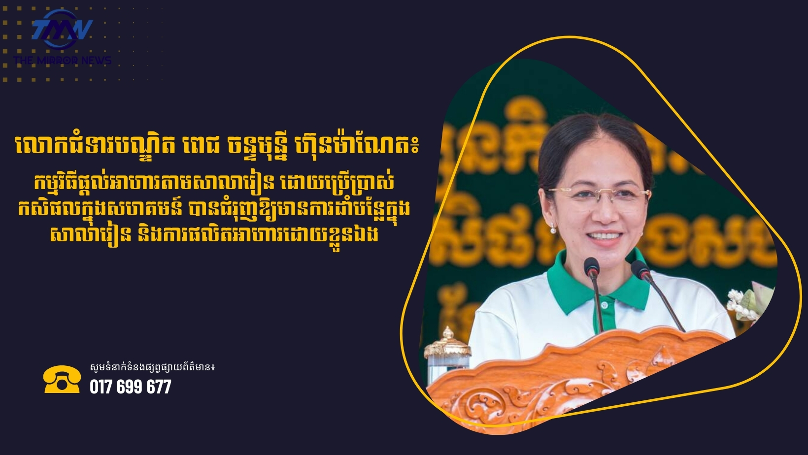 លោកជំទាវបណ្ឌិត ពេជ ចន្ទមុន្នី ហ៊ុនម៉ាណែត៖ កម្មវិធីផ្តល់អាហារតាមសាលារៀន ដោយប្រើប្រាស់កសិផលក្នុងសហគមន៍ បានជំរុញឱ្យមានការដាំបន្លែក្នុងសាលារៀន និងការផលិតអាហារដោយខ្លួនឯង