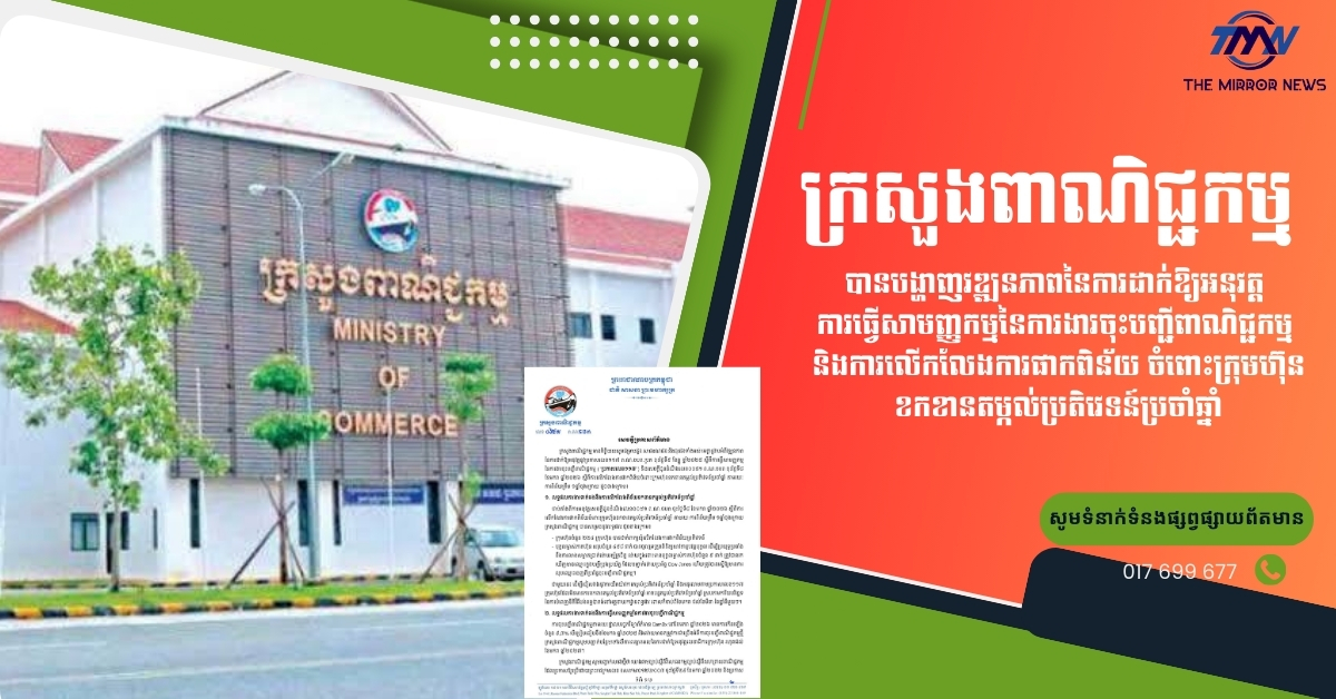 ក្រសួងពាណិជ្ជកម្មបានបង្ហាញវឌ្ឍនភាពនៃការដាក់ឱ្យអនុវត្ត ការរធ្វើសាមញ្ញកម្មនៃការងារចុះបញ្ជីពាណិជ្ជកម្ម និងការលើកលែងការផាកពិន័យ ចំពោះក្រុមហ៊ុនខកខានតម្កល់ប្រតិវេទន៍ប្រចាំឆ្នាំ