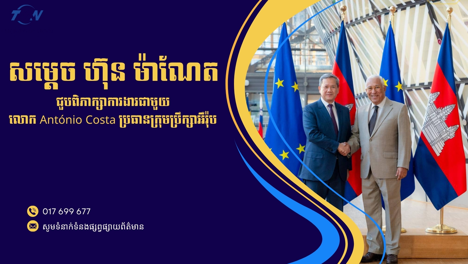 សម្តេចធិបតីនាយករដ្ឋមន្ត្រី ហ៊ុន ម៉ាណែត ជួបពិភាក្សាការងារជាមួយលោក António Costa ប្រធានក្រុមប្រឹក្សាអឺរ៉ុប