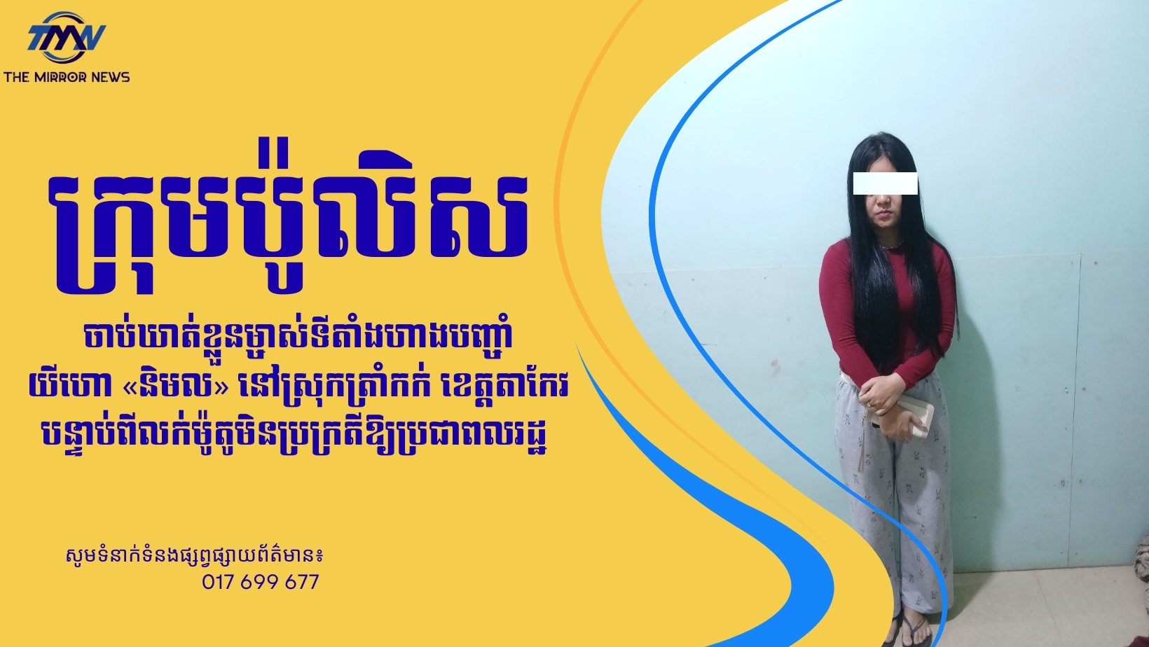 ក្រុមប៉ូលិសចាប់ឃាត់ខ្លួនម្ចាស់ទីតាំងហាងបញ្ចាំយីហោ «និមល» នៅស្រុកត្រាំកក់ ខេត្តតាកែវ បន្ទាប់ពីលក់ម៉ូតូមិនប្រក្រតីឱ្យប្រជាពលរដ្ឋ
