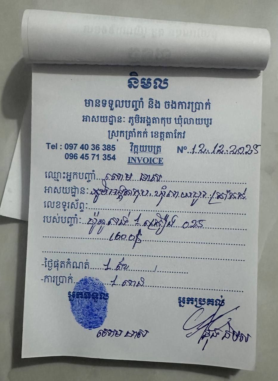 ជនរងគ្រោះឈ្មោះ អ៊ុំ ផាន្នី មានស្រុកកំណើតនៅភូមិពាម ឃុំកំពង់រាប ស្រុកព្រៃកប្បាស ខេត្តតាកែវ បានបញ្ជាក់ថា គាត់បានទិញម៉ូតូពីហាង «និមល» កាលពីនៅថ្ងៃទី១៣ ខែកុម្ភៈ ឆ្នាំ២០២៦ ហើយនៅពេលបានផ្លាកលេខ និងកាតគ្រី កន្លែងលក់នោះ បានប្រគល់ឲ្យគាត់យកទៅកឹបដោយខ្លួនឯង។ ខណៈបុរសនោះ បានយកទៅក្រុមហ៊ុនហុងដា ២៧១ កឹបឲ្យ តែគេមិនព្រមកឹបឲ្យនោះឡើយ ហើយមិនបានប្រាប់ថា មានបញ្ហាអ្វីនោះដែរ។ បុរសនោះក៏បន្តយកទៅជាងធម្មតាទើបគេកឹបលេខឲ្យ ដោយជនរងគ្រោះមិនអស់ចិត្ត ក៏បន្តទៅសួរជំនាញ និងមន្ទីរសាធារណៈការ និងដឹកជញ្ជូនរាជធានីភ្នំពេញ។ ពេលនោះ មន្ដ្រីជំនាញបញ្ជាក់ថា ផ្លាកលេខ និងកាតគ្រី គឺក្លែងក្លាយ ដោយម៉ូតូនោះ មានផ្លាកលេខដើមខេត្តកំពង់ស្ពឺ។