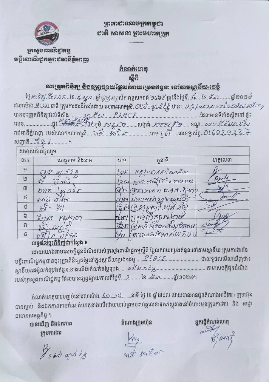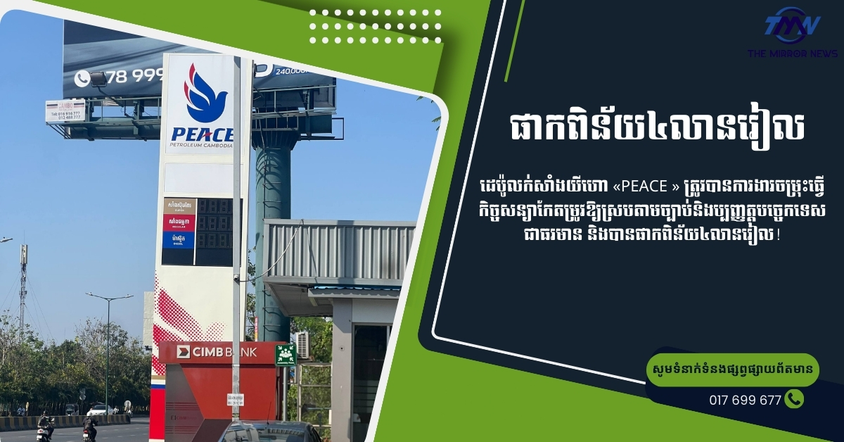ដេប៉ូលក់សាំងយីហោ «PEACE » ត្រូវបានការងារចម្រុះធ្វើកិច្ចសន្យាកែតម្រូវឱ្យស្របតាមច្បាប់និងប្បញ្ញត្តបច្ចេកទេសជាធរមាន និងបានផាកពិន័យ៤លានរៀល!