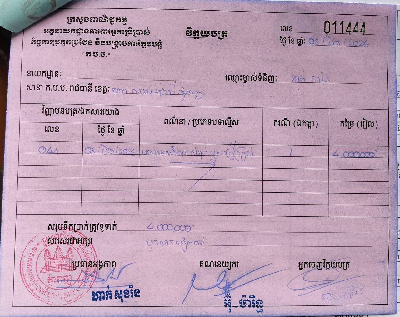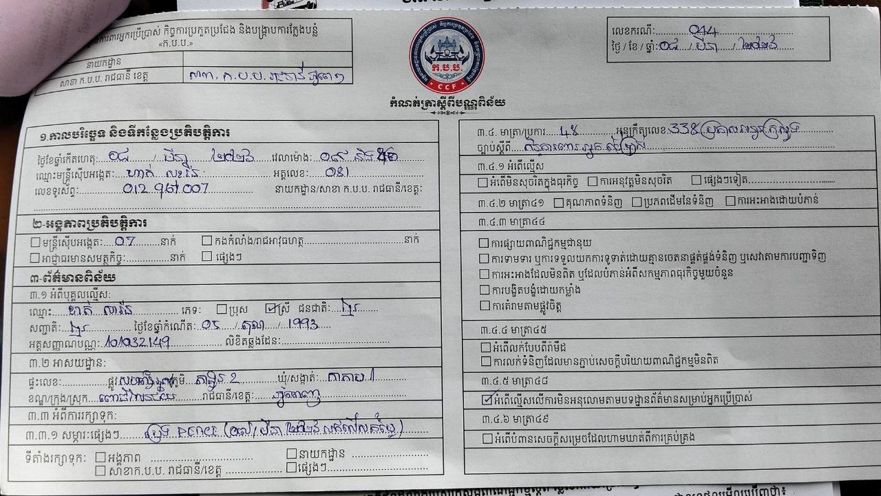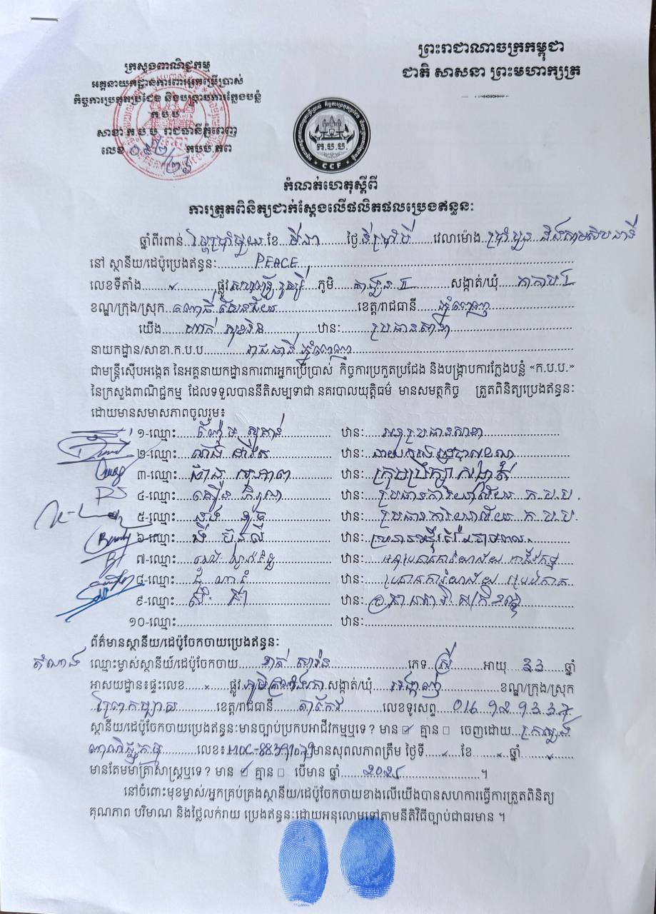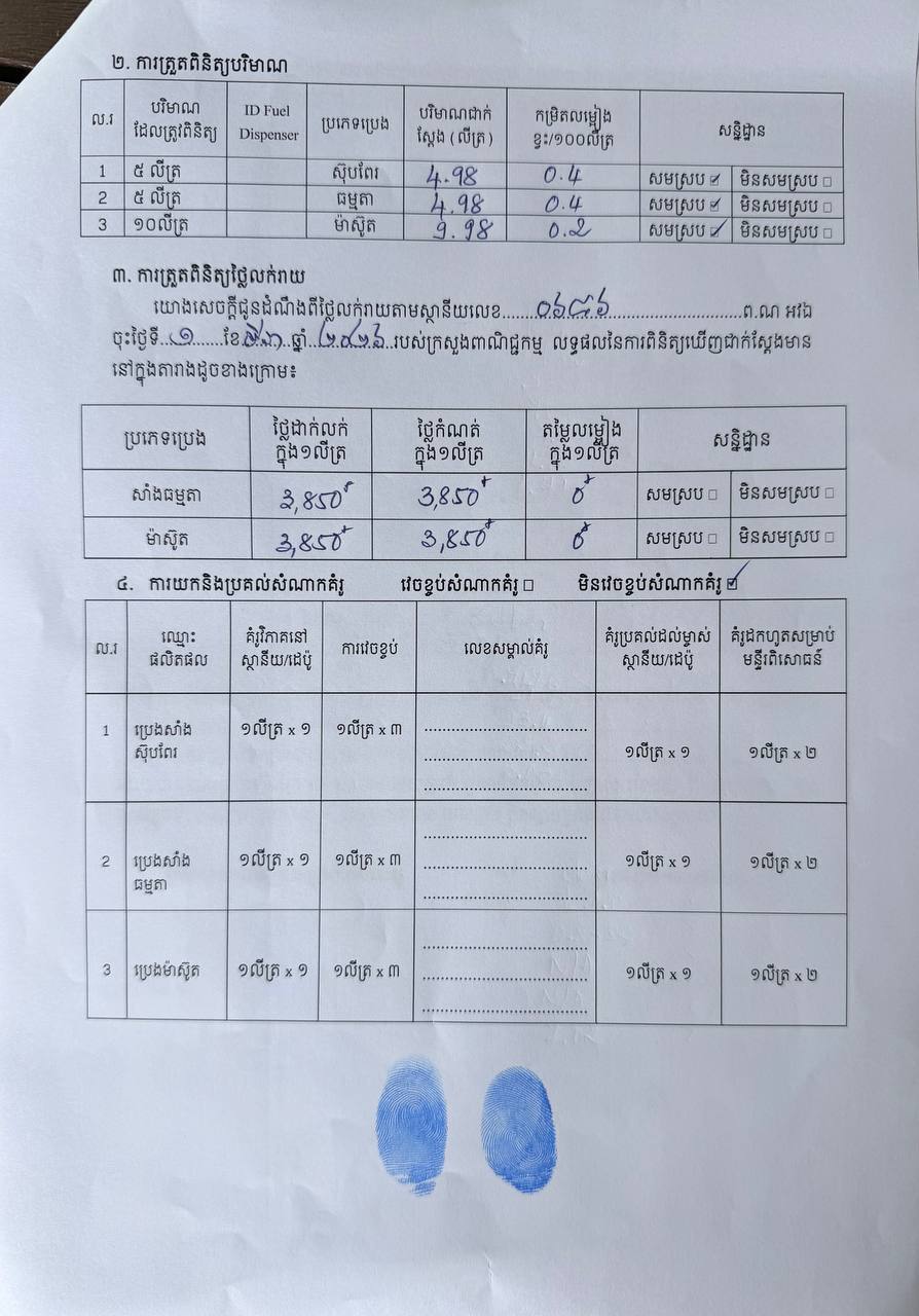 (ភ្នំពេញ)៖ ដេប៉ូលក់សាំងយីហោ «PEACE» រងការផាកពិន័យ៤លានរៀល ក្រោយមិនដាក់តម្លៃ និងលក់លើសតម្លៃជាង៦០០០រៀល នៅតាងួន សង្កាត់កាកាបទី១ ខណ្ឌពោធិ៍សែនជ័យ រាជធានីភ្នំពេញ នៅវេលាម៉ោង៩៖០០នាទីព្រឹក ថ្ងៃទី៨ ខែមីនា ឆ្នាំ២០២៦។