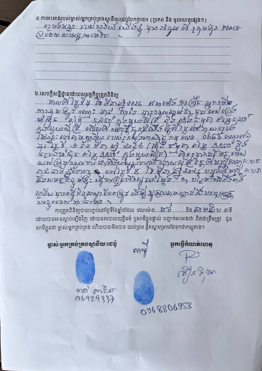 ជាលទ្ធផល ក្រុមការងារបានធ្វើការផាកពិន័យទីតាំងនេះចំនួន ៤លានរៀល និងធ្វើកិច្ចសន្យាកែតម្រូវឱ្យស្របតាមច្បាប់នឹងបទប្បញ្ញត្តបច្ចេកទេសជាធរមាន៕