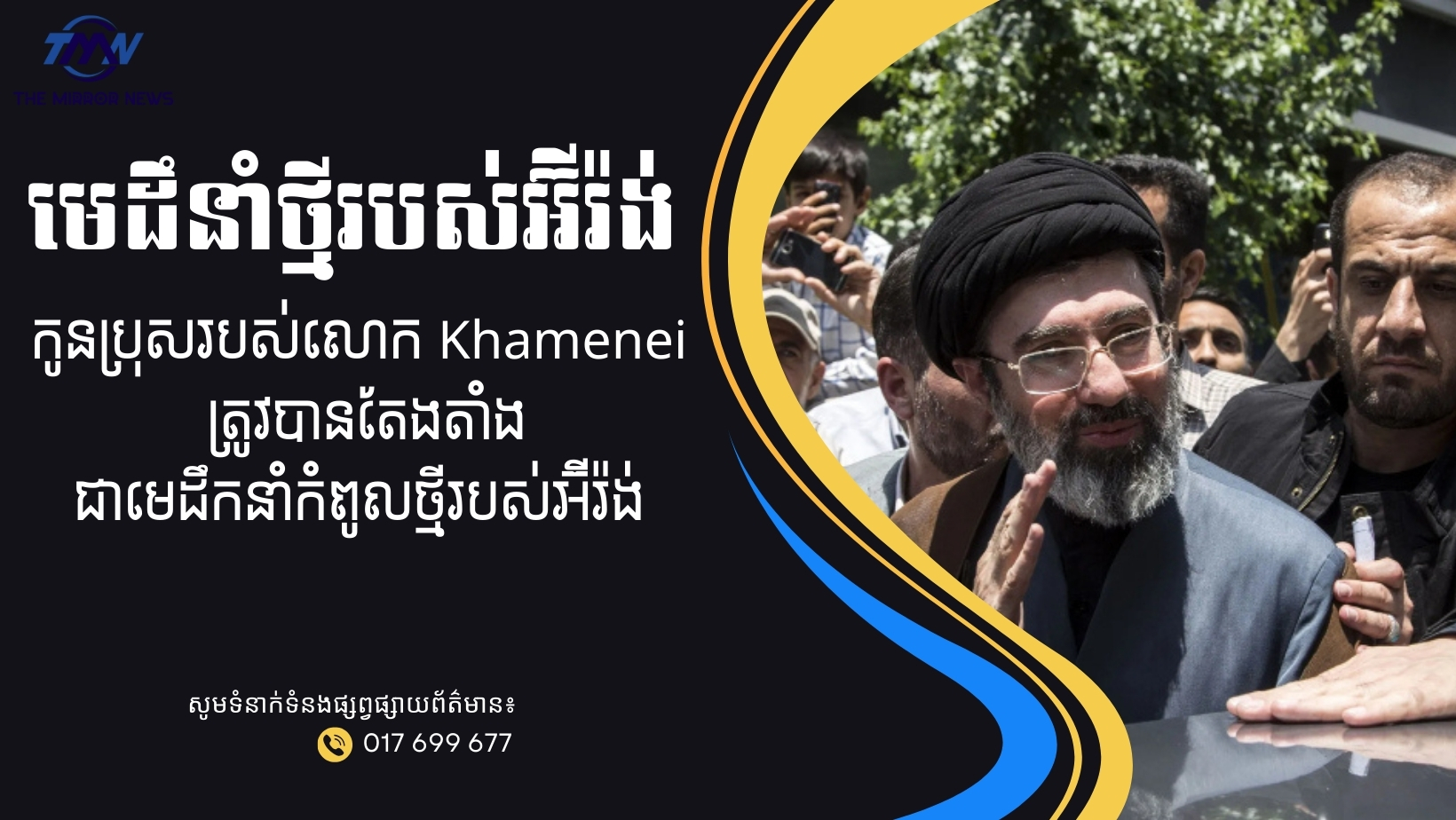សូមបញ្ជាក់ថា ឪពុករបស់លោក Mojtaba គឺមេដឹកនាំកំពូលអ៉ីរ៉ង់ លោក Ali Khamenei ត្រូវបានសម្លាប់ក្នុងការវាយប្រហារតាមផ្លូវអាកាសរបស់ សហរដ្ឋអាមេរិក និងអ៉ីស្រាអែលប្រឆាំងនឹងអ៉ីរ៉ង់កាលពីសប្ដាហ៍មុន៕