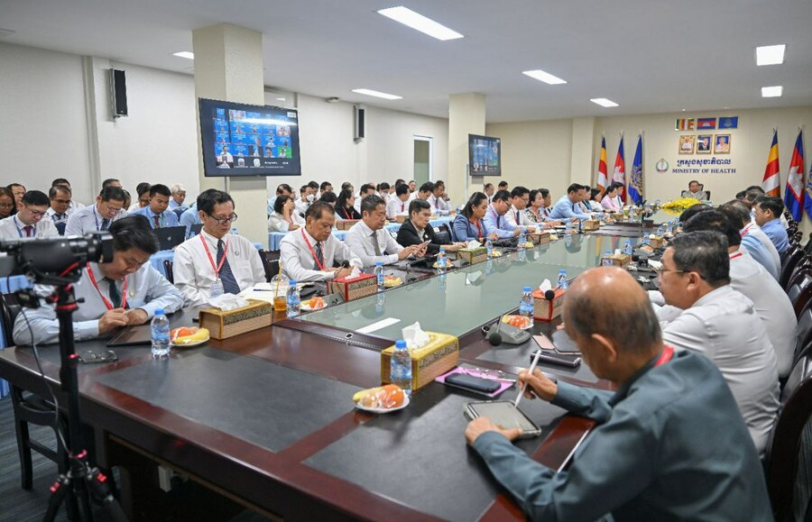 (ភ្នំពេញ)៖ នារសៀលថ្ងៃចន្ទ ទី៩ ខែមីនា ឆ្នាំ២០២៦ នៅទីស្ដីការក្រសួងសុខាភិបាល ឯកឧត្តមសាស្ត្រាចារ្យ ឈាង រ៉ា រដ្ឋមន្ត្រីក្រសួងសុខាភិបាល បានដឹកនាំកិច្ចប្រជុំកម្រិតថ្នាក់ដឹកនាំលើកទី១ នៃខែមីនា ដើម្បីពិនិត្យវឌ្ឍនភាពការងារ និងលើកទិសដៅបន្ត ដោយមានការអញ្ជើញចូលរួមពី ឯកឧត្តម លោកជំទាវ រដ្ឋលេខាធិការ អនុរដ្ឋលេខាធិការ ទីប្រឹក្សា អគ្គនាយក អគ្គនាយករង និងគ្រប់ប្រធានអង្គភាពថ្នាក់កណ្តាលក្រោមឱវាទក្រសួងសុខាភិបាល ប្រធានមន្ទីរសុខាភិបាលរាជធានីភ្នំពេញ និងតាមប្រព័ន្ធ Zoom ប្រធានមន្ទីរសុខាភិបាលខេត្ត។