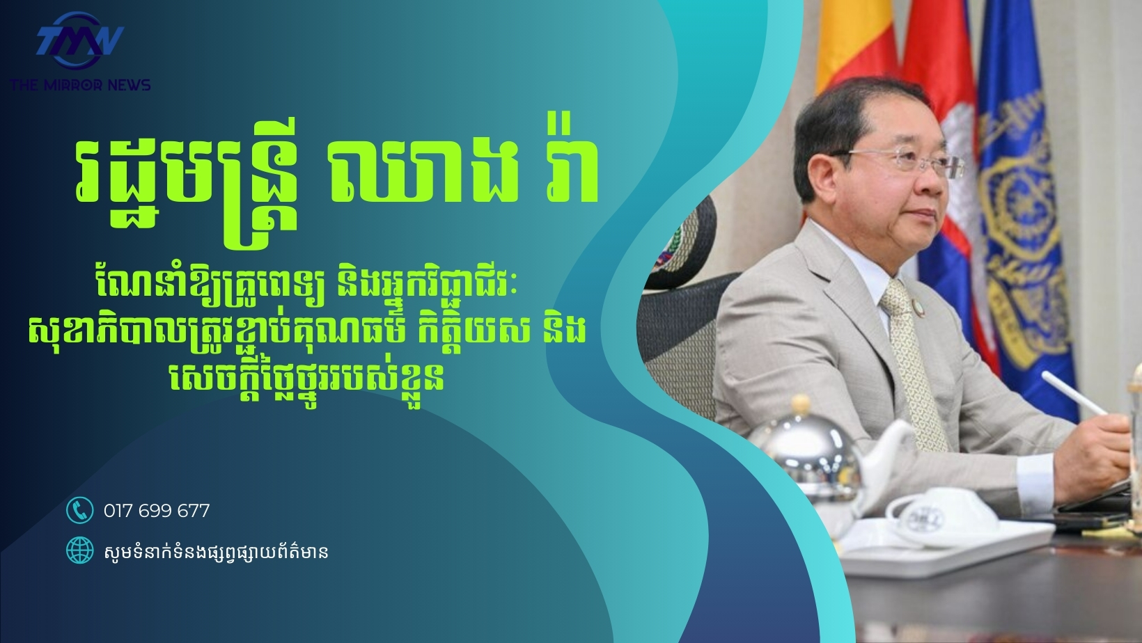 រដ្ឋមន្ត្រី ឈាង រ៉ា ណែនាំឱ្យគ្រូពេទ្យ និងអ្នកវិជ្ជាជីវៈសុខាភិបាលត្រូវខ្ជាប់គុណធម៌ កិត្តិយស និងសេចក្តីថ្លៃថ្នូររបស់ខ្លួន