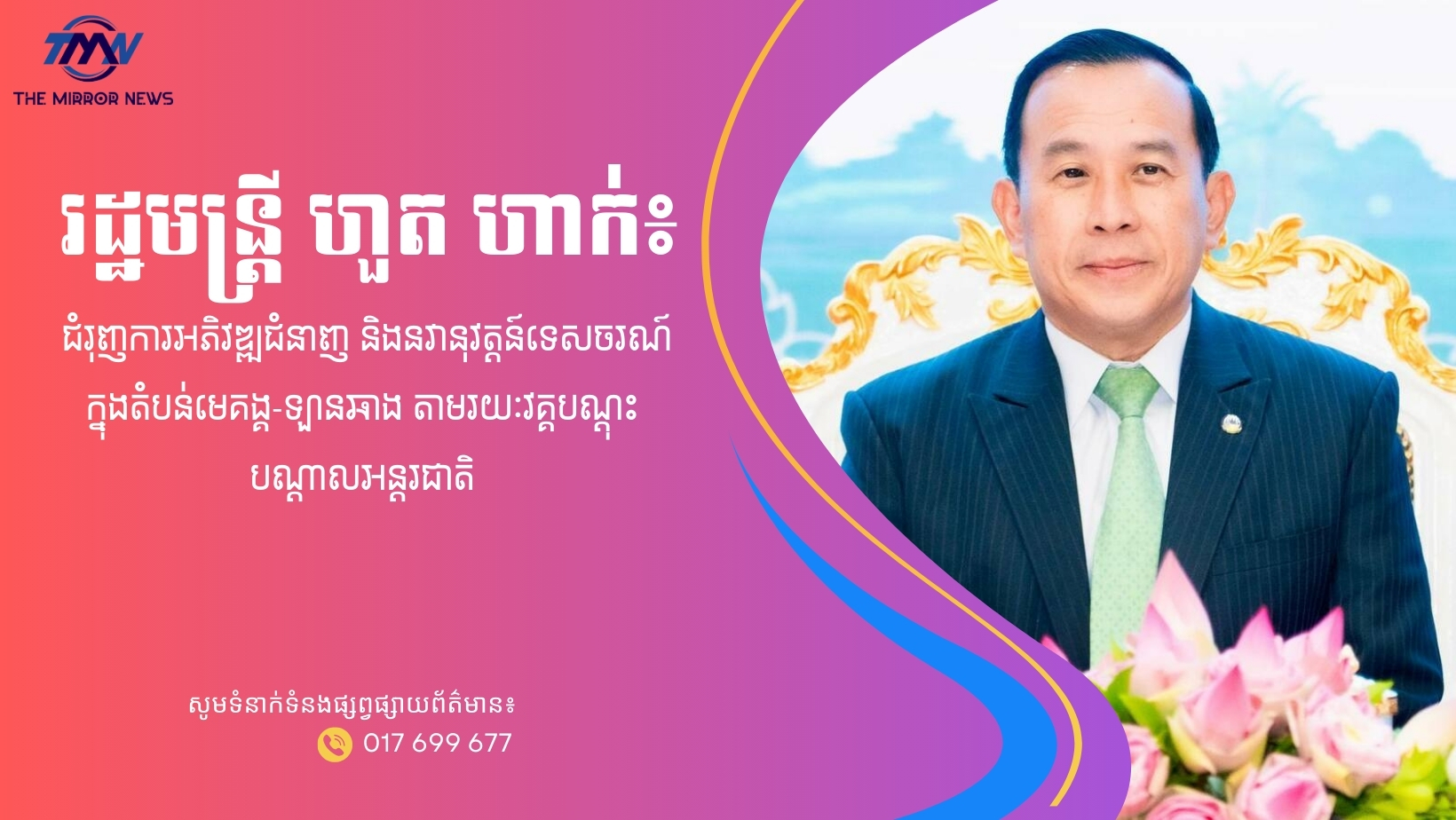 រដ្ឋមន្ត្រី​ ហួត ហាក់៖ ជំរុញការអភិវឌ្ឍជំនាញ និងនវានុវត្តន៍ទេសចរណ៍ក្នុងតំបន់មេគង្គ-ឡានឆាង តាមរយៈវគ្គបណ្ដុះបណ្ដាលអន្តរជាតិ