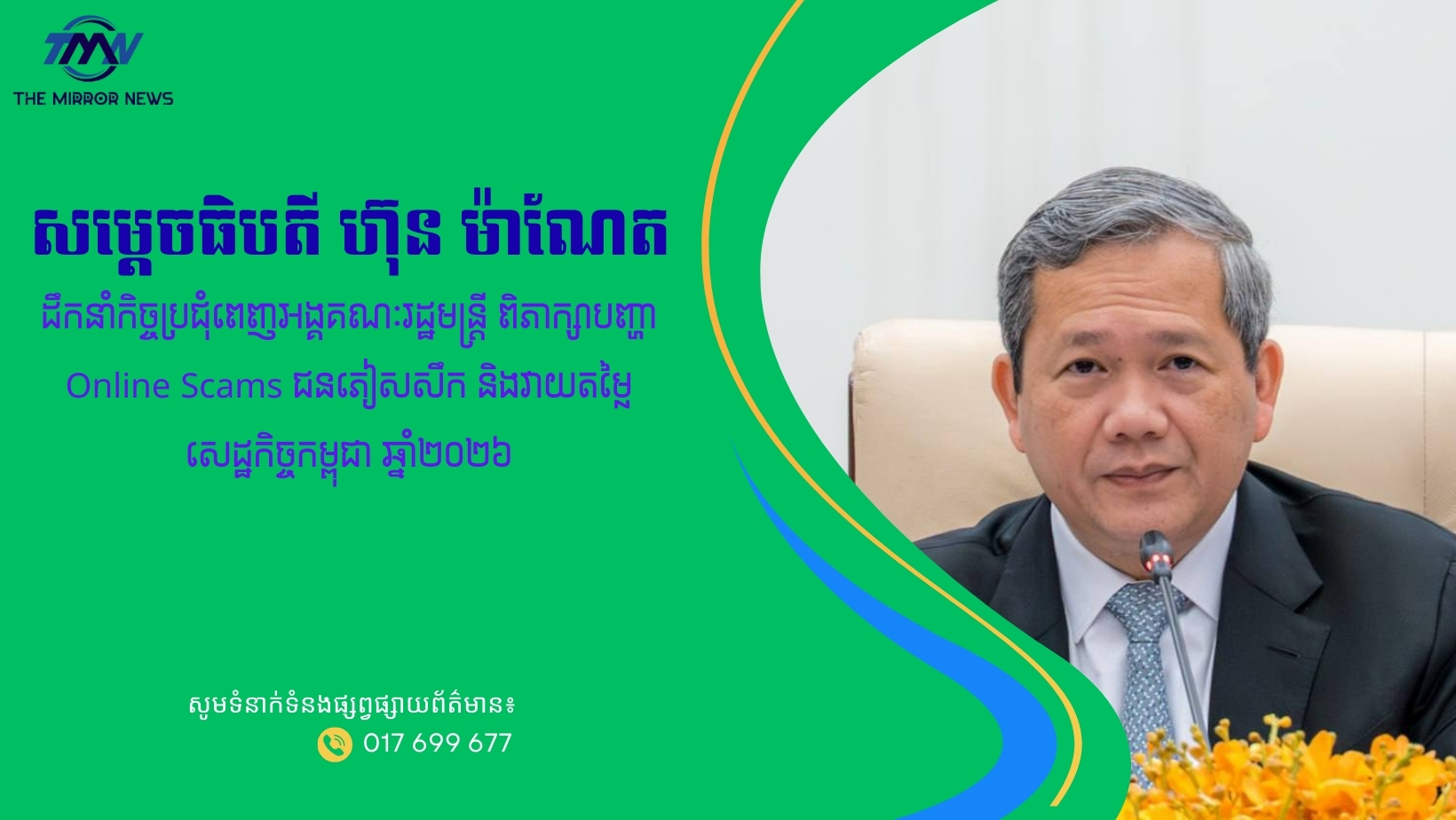 សម្តេចធិបតី ហ៊ុន ម៉ាណែត ដឹកនាំកិច្ចប្រជុំពេញអង្គគណៈរដ្ឋមន្ត្រី ពិភាក្សាបញ្ហា Online Scams ជនភៀសសឹក និងវាយតម្លៃសេដ្ឋកិច្ចកម្ពុជា ឆ្នាំ២០២៦